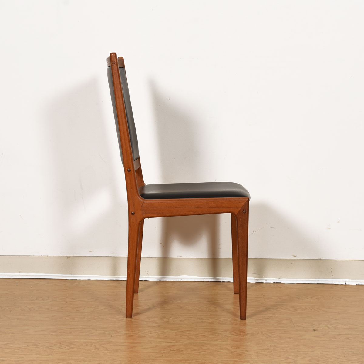Danish Modern teak chairs by Kofod Larsen. A teak frame surrounds the backrest, upholstered on both sides in black as is the seat. The legs are squared and tapered.