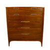 Graceful Walnut Dresser with 5 Spacious Drawers. Chrome Pulls and narrowing legs give this piece an added sense of elegance.