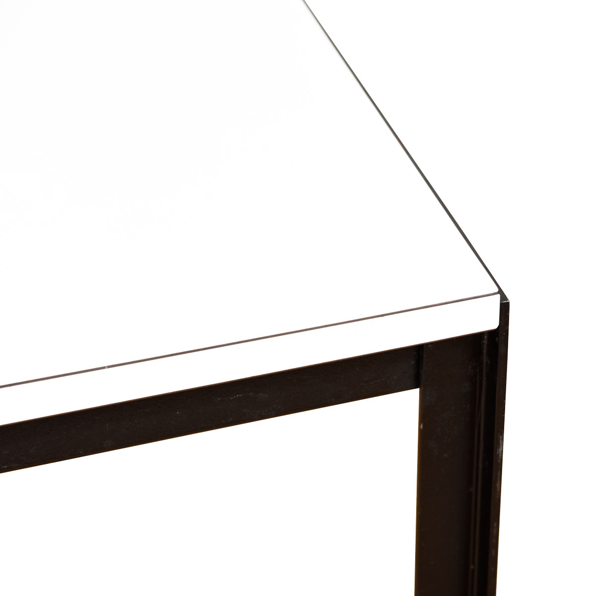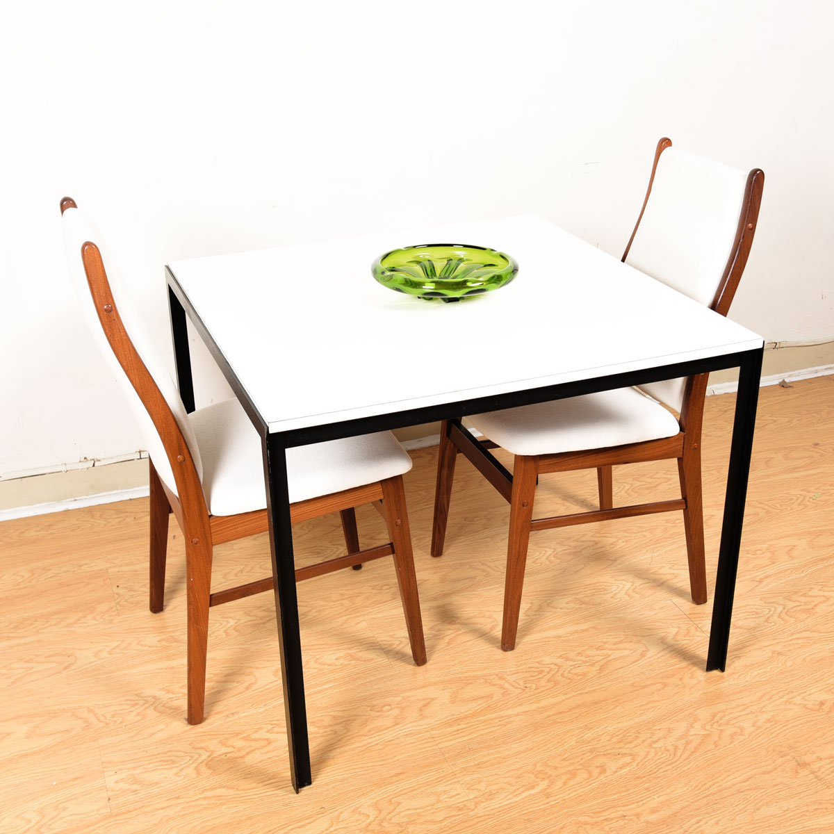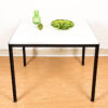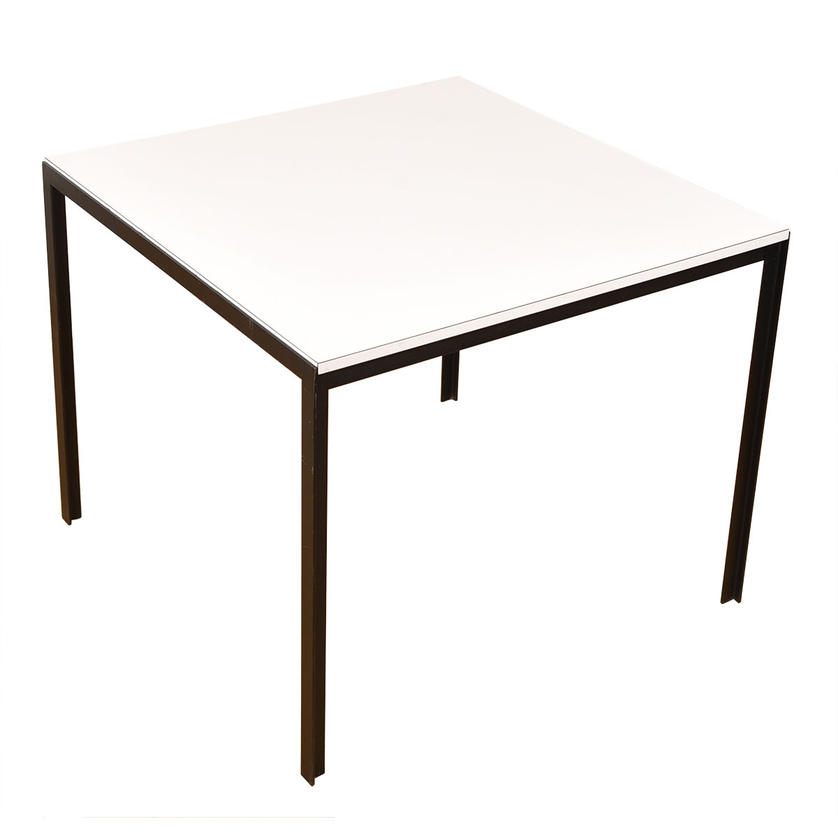 This 1960’s vintage T-Angle table from Knoll features a square top of white laminate and black iron legs.