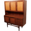 With it’s distinctive Afrormosia Hardwood Recessed Door Handles and sculpted legs this is a stunning and exceedingly rare example of Wilkins design. It features rich grained teak construction from the hand of G Plan’s master craftsman and offers more than ample storage space. Three cane inset doors that open to adjustable shelving rise above a classic Fresco sideboard -this affords ample surface area above even more cabinet space with adjustable shelving and three large drawers -the top one partitioned for silverware and the like.