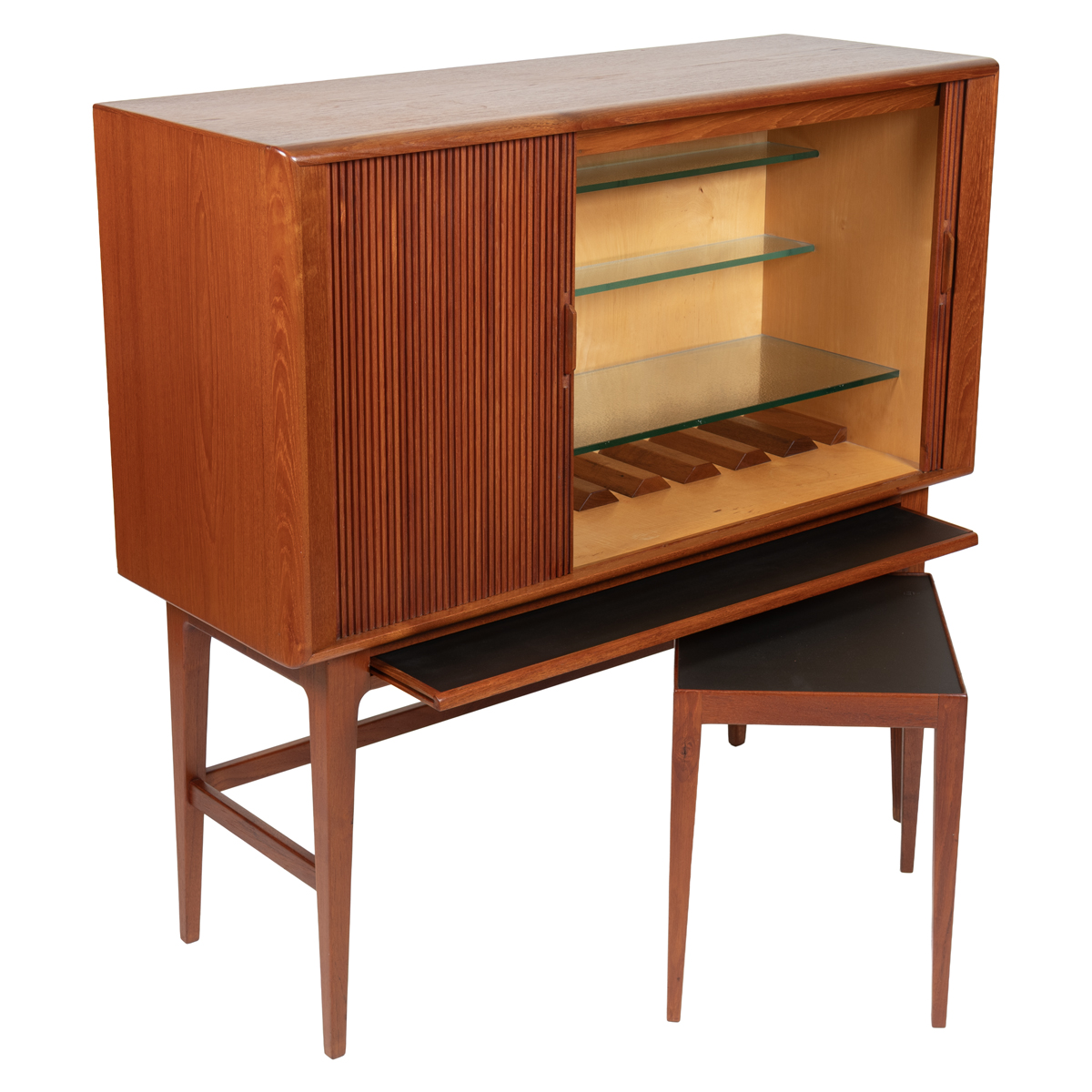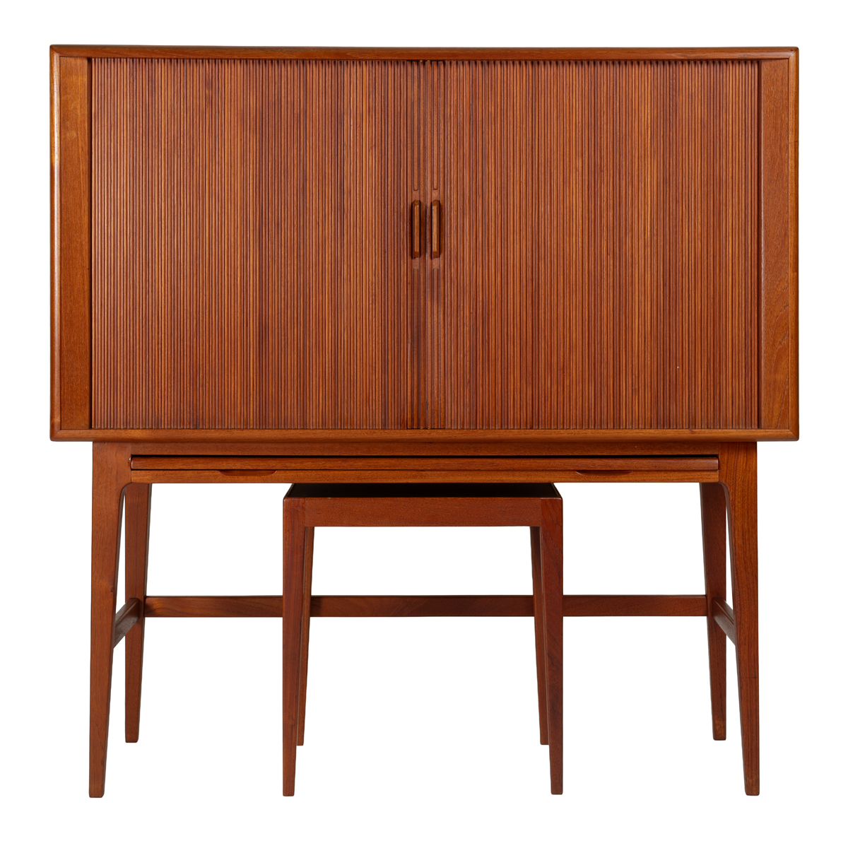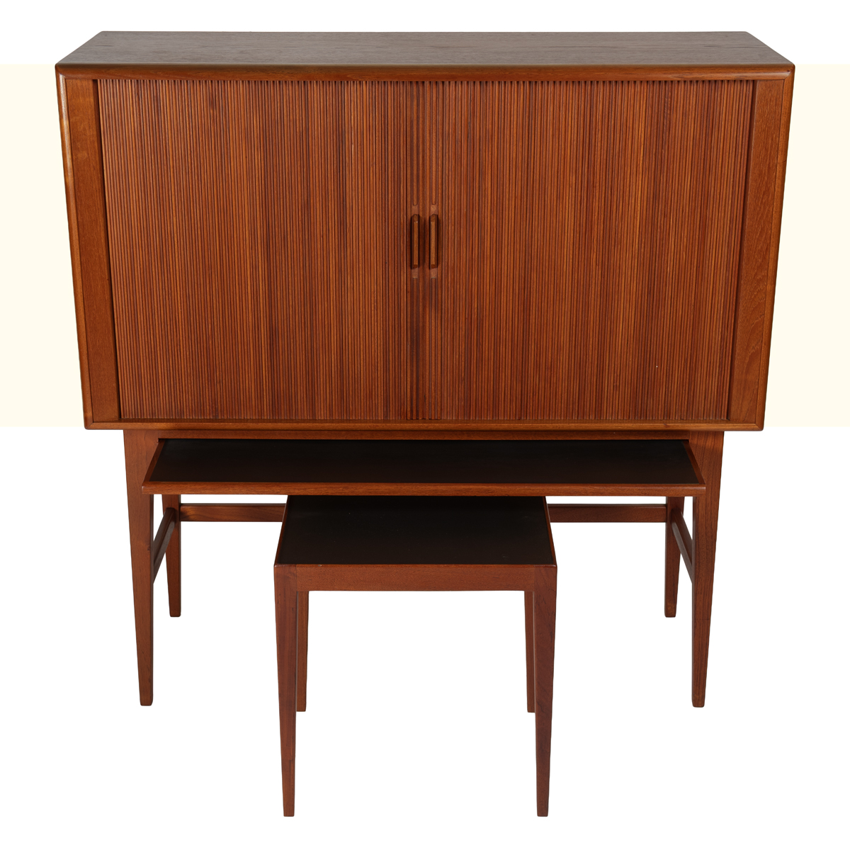 Kurt Østervig Bar Cabinet w Nesting Table + Tambour Doors in Danish Teak — Gorgeous!