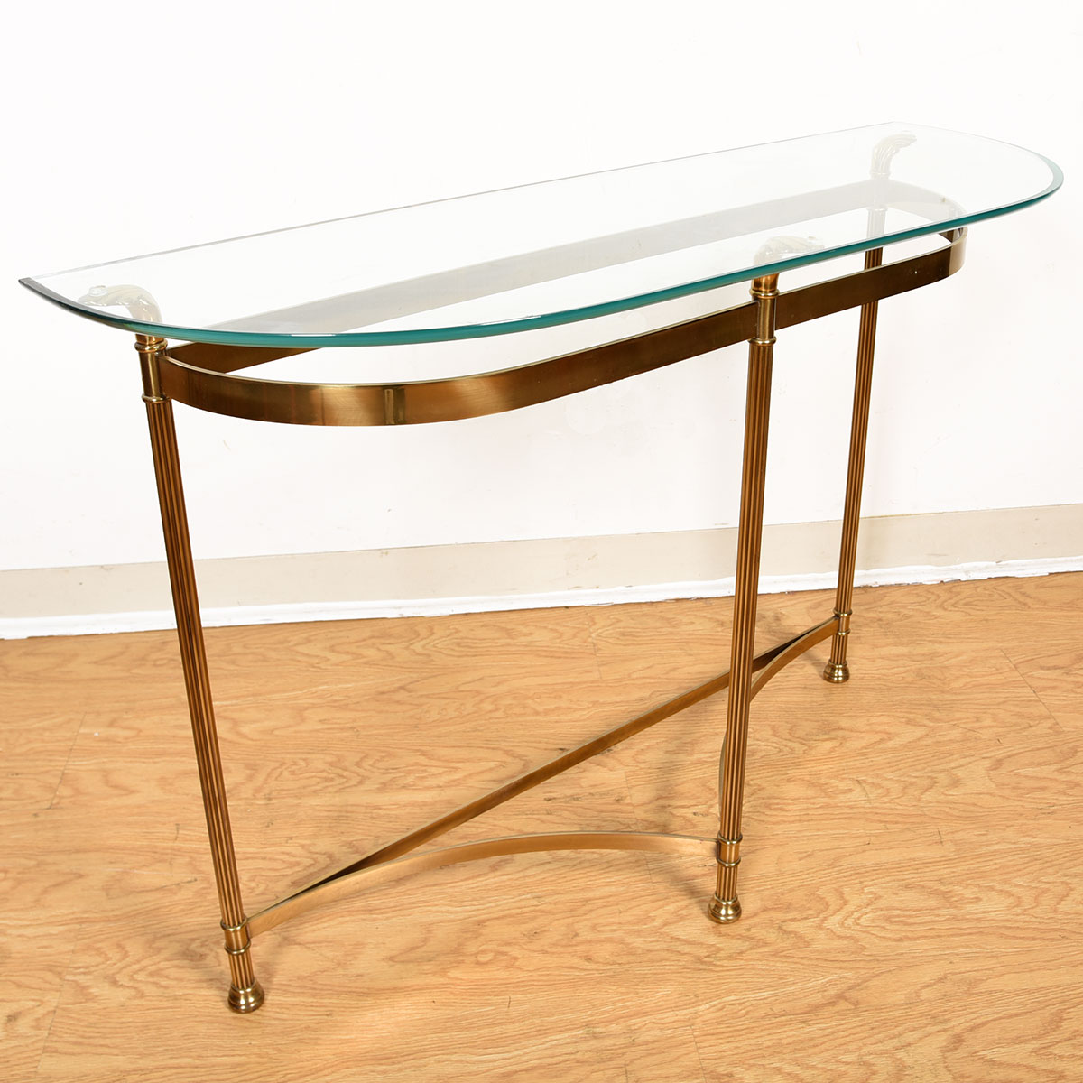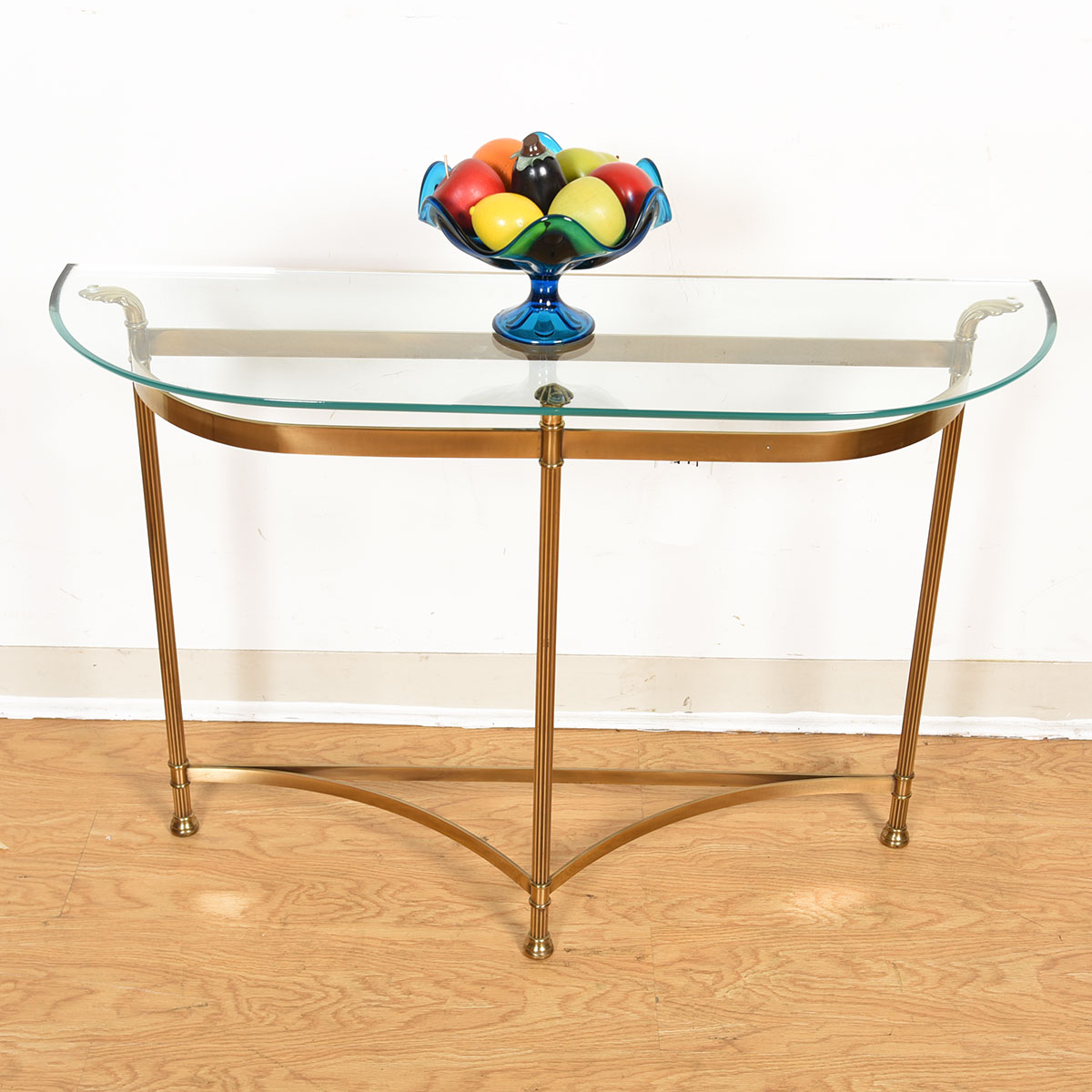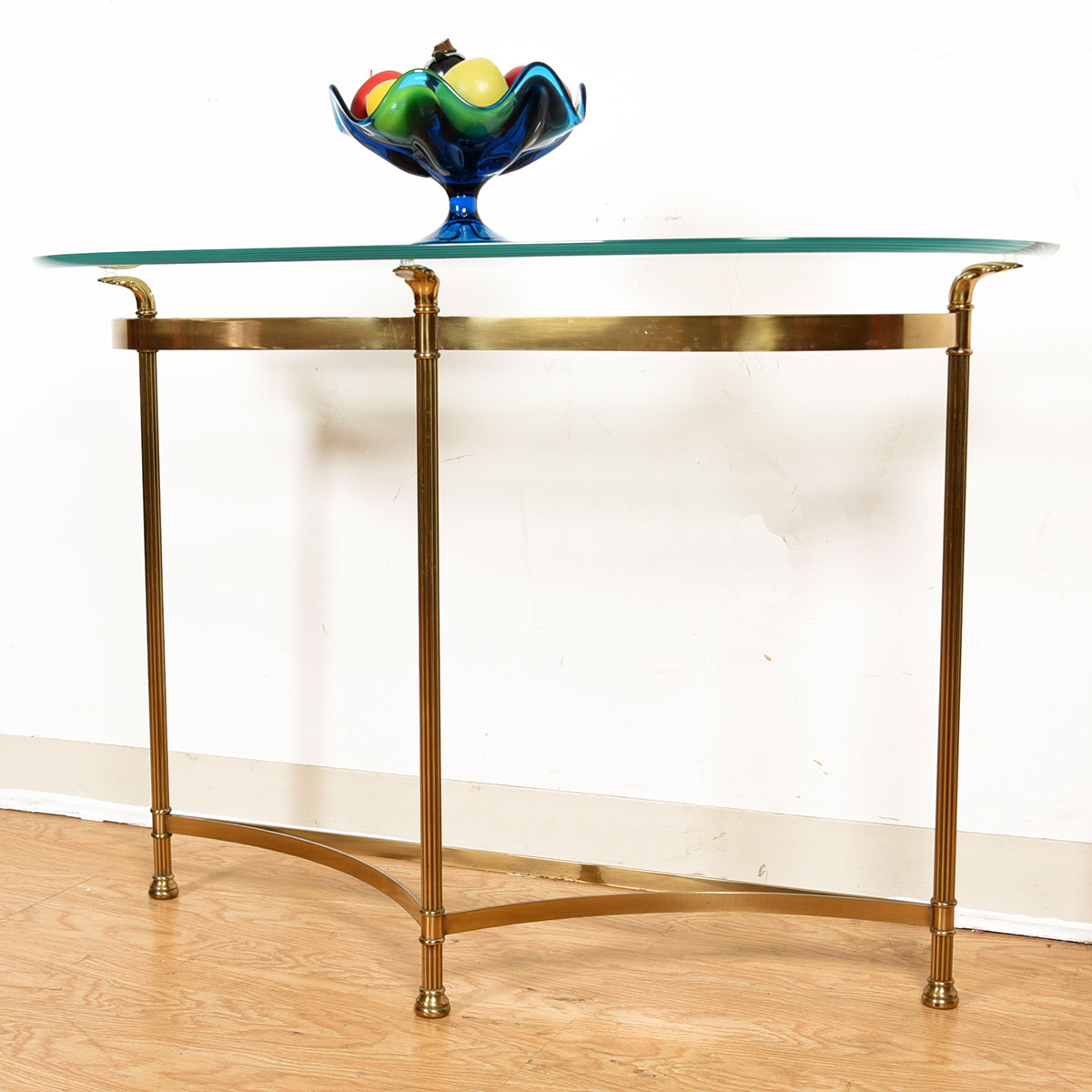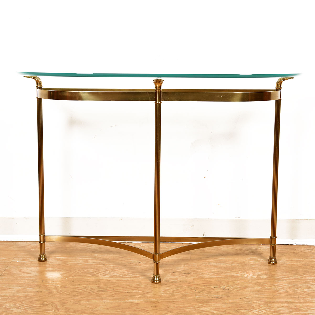 To arrange purchase or for more information about the LaBarge Half-Moon Glass & Brass Console Table please call us at 202.882.1648 or email us at info@modernmobler.com