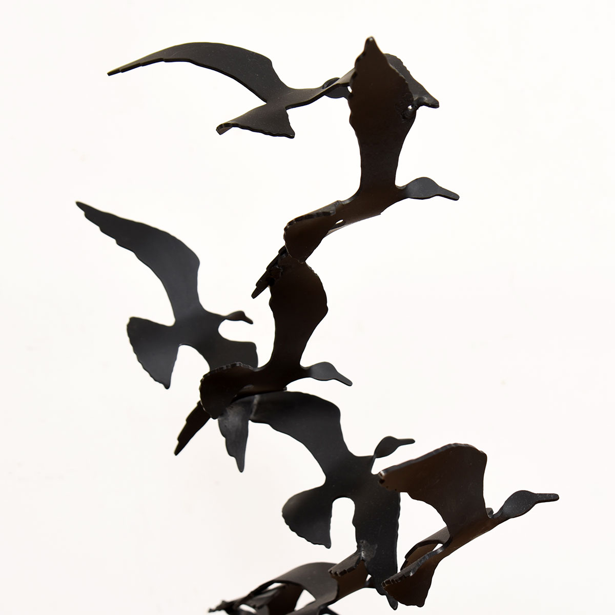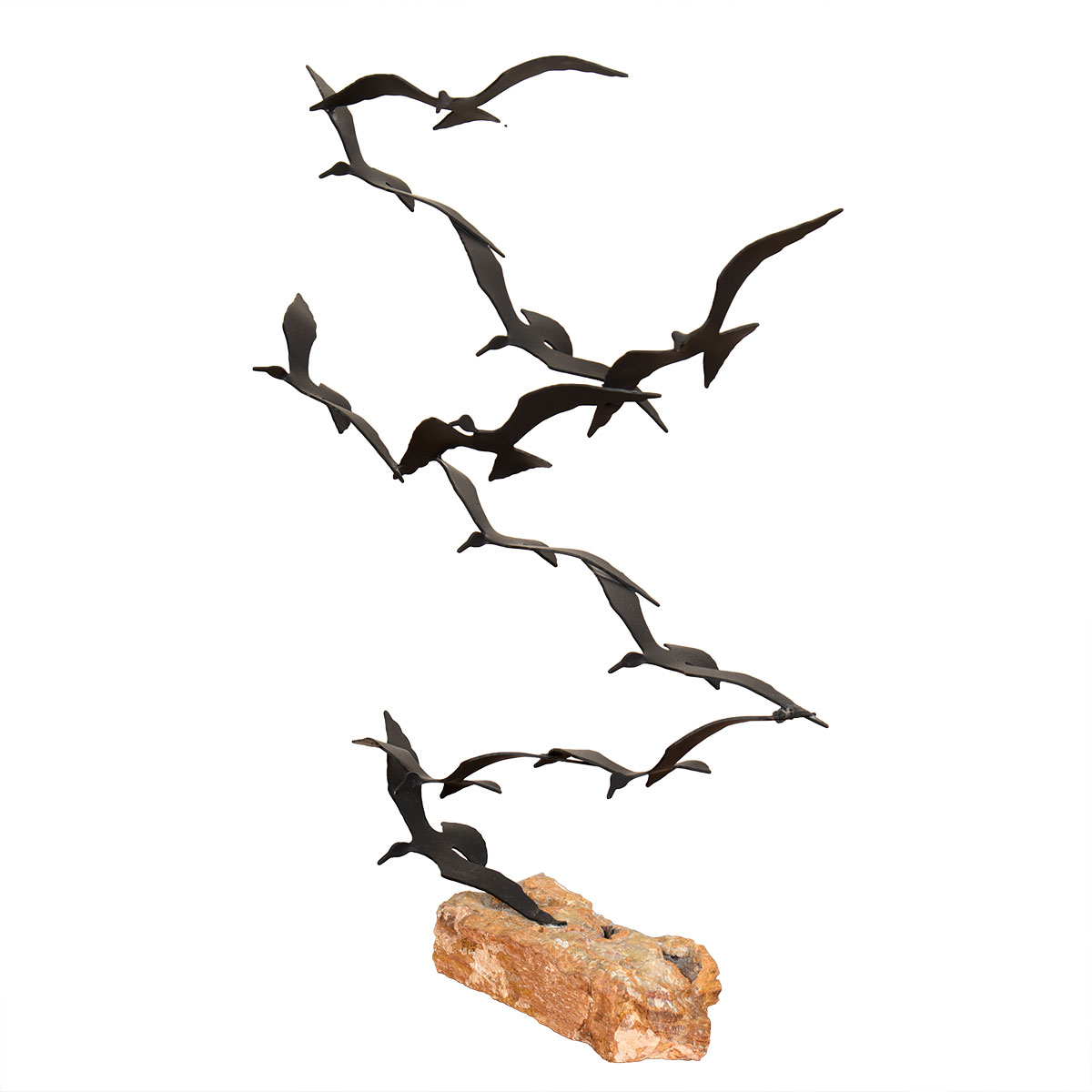 - A flock of birds takes flight above a marble base on this MCM Jere-style sculpture