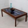 Large Danish Modern Coffee Table in Rosewood with White & Blue Tile Top.