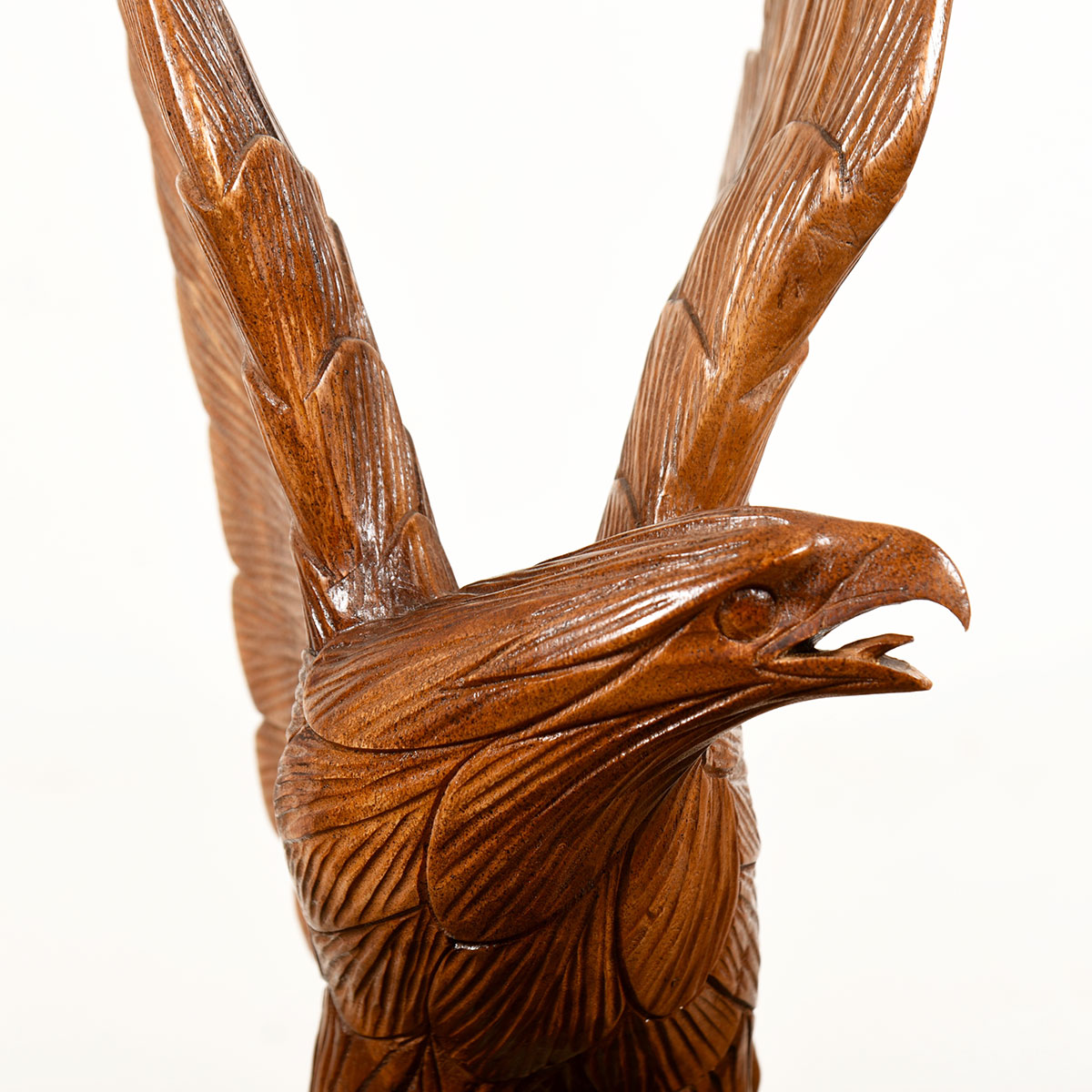 - Hand carved sculpture of an eagle from a block of wood