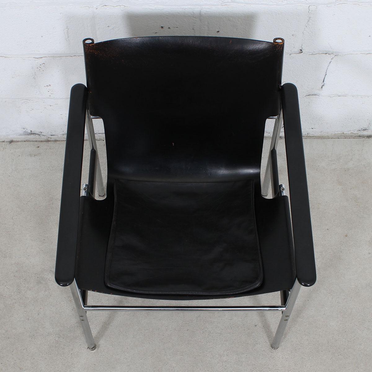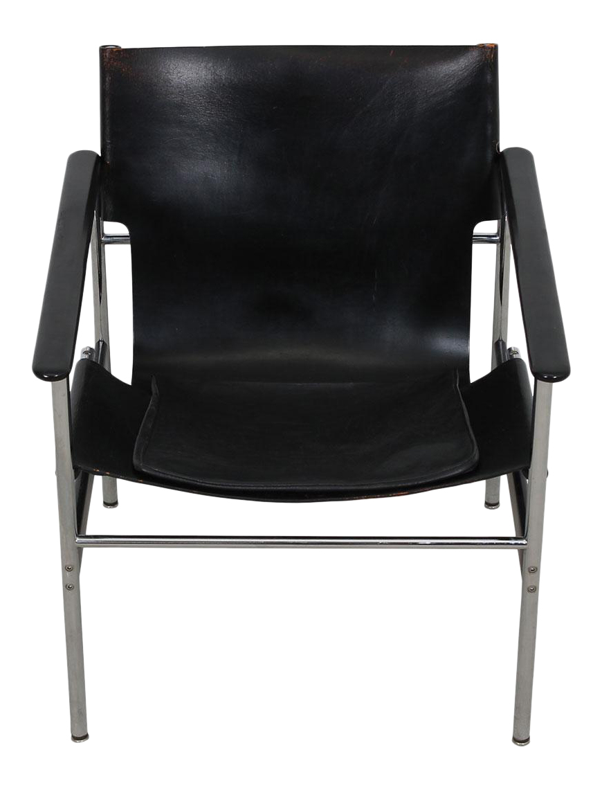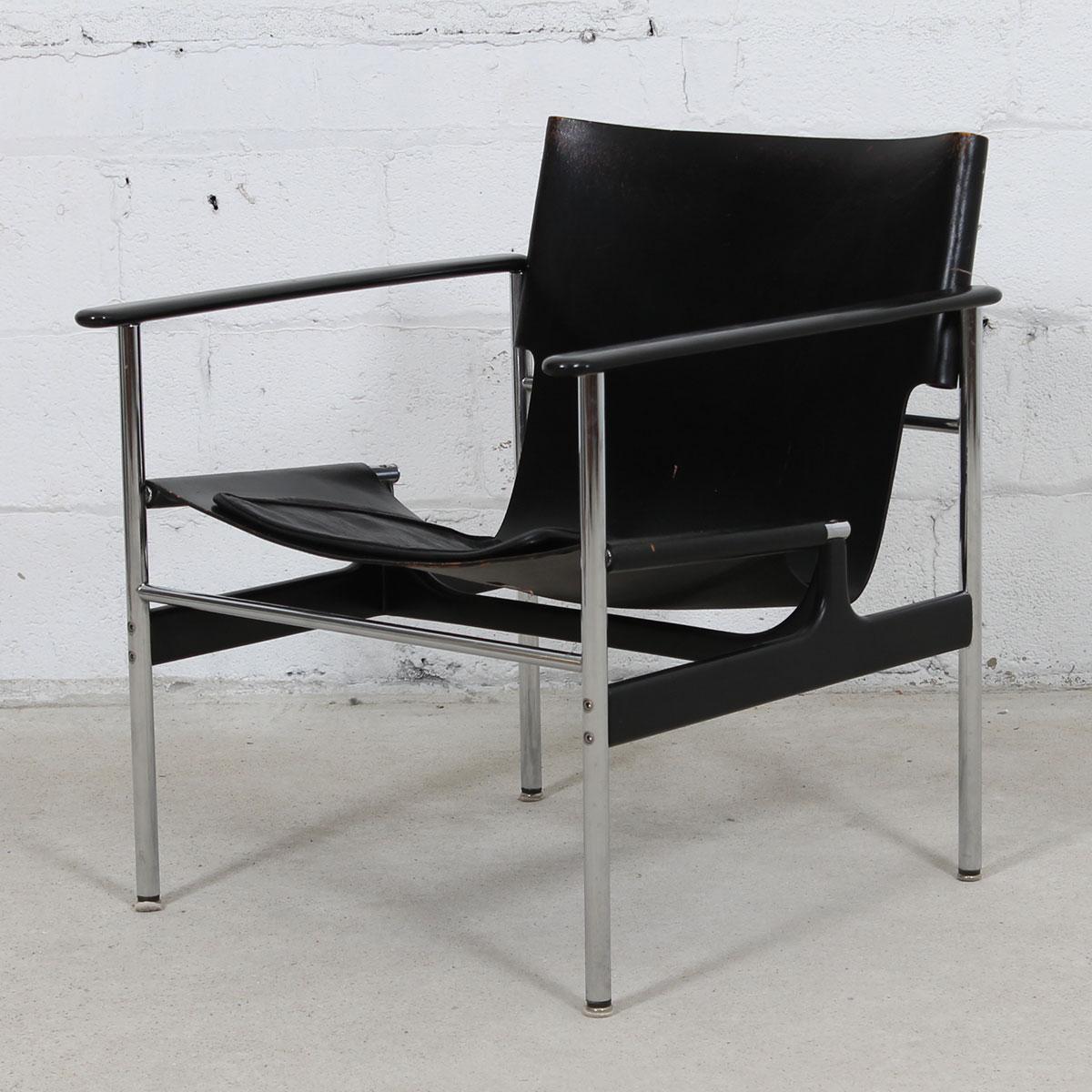 Leather & Chrome Sling Chair #657, by Charles Pollack for Knoll