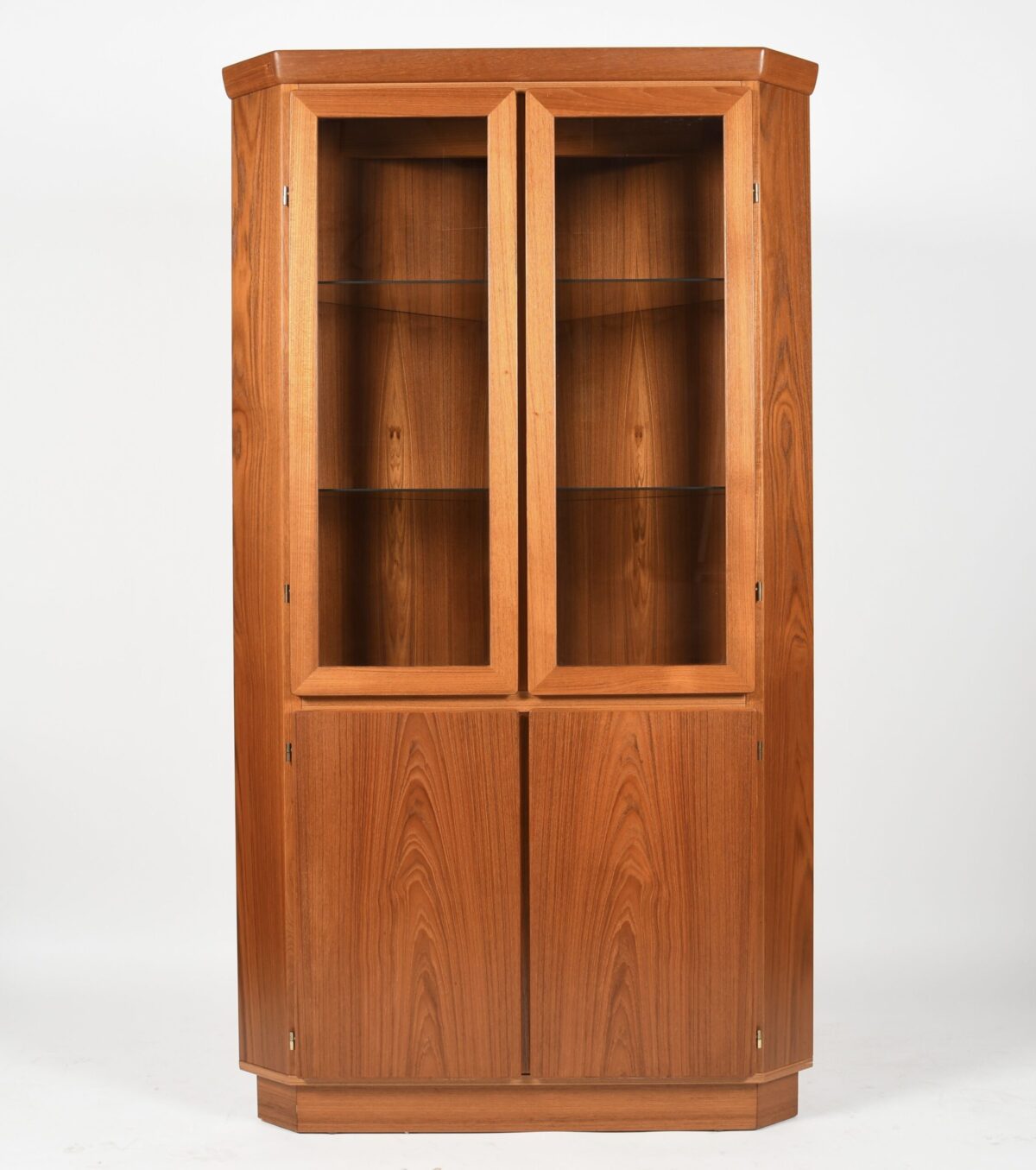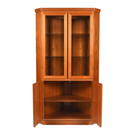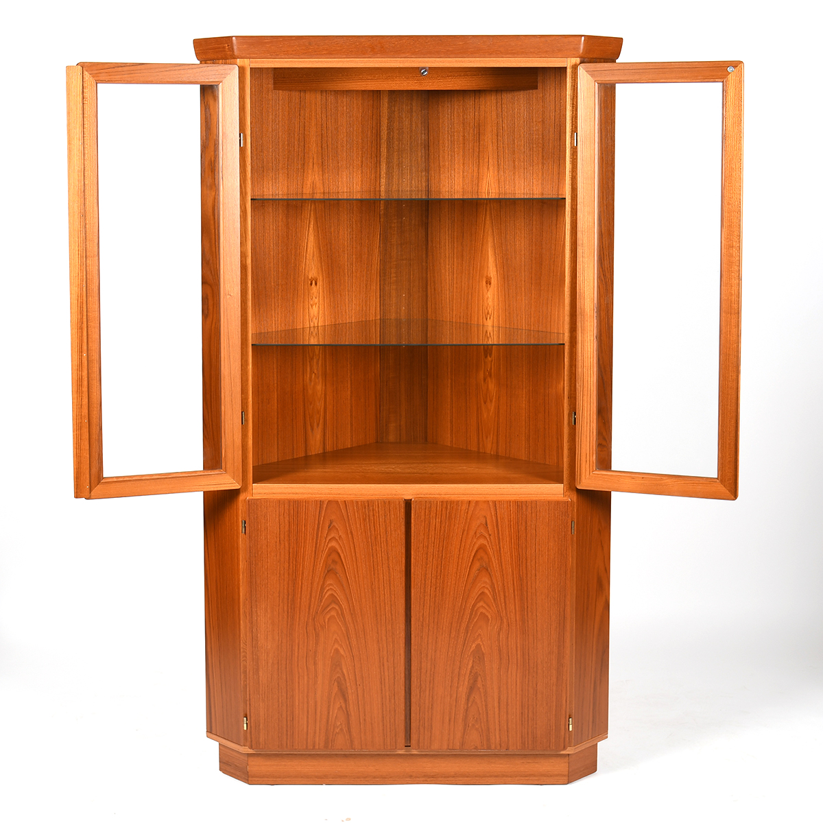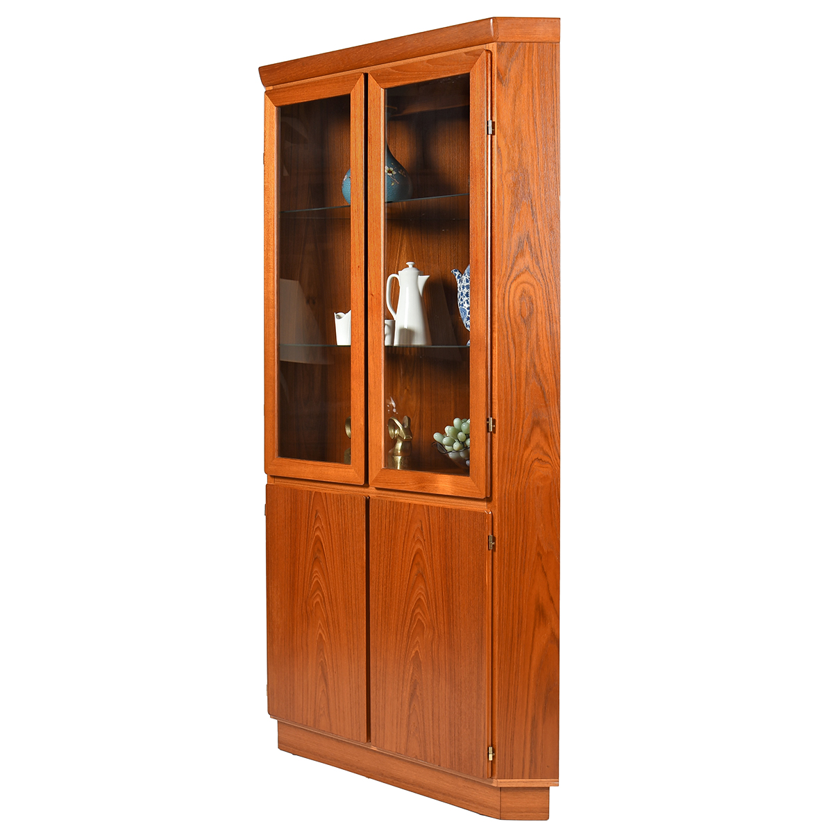 » » » » Lighted Danish Teak Corner Display Cabinet w. Adjustable Shelves Throughout