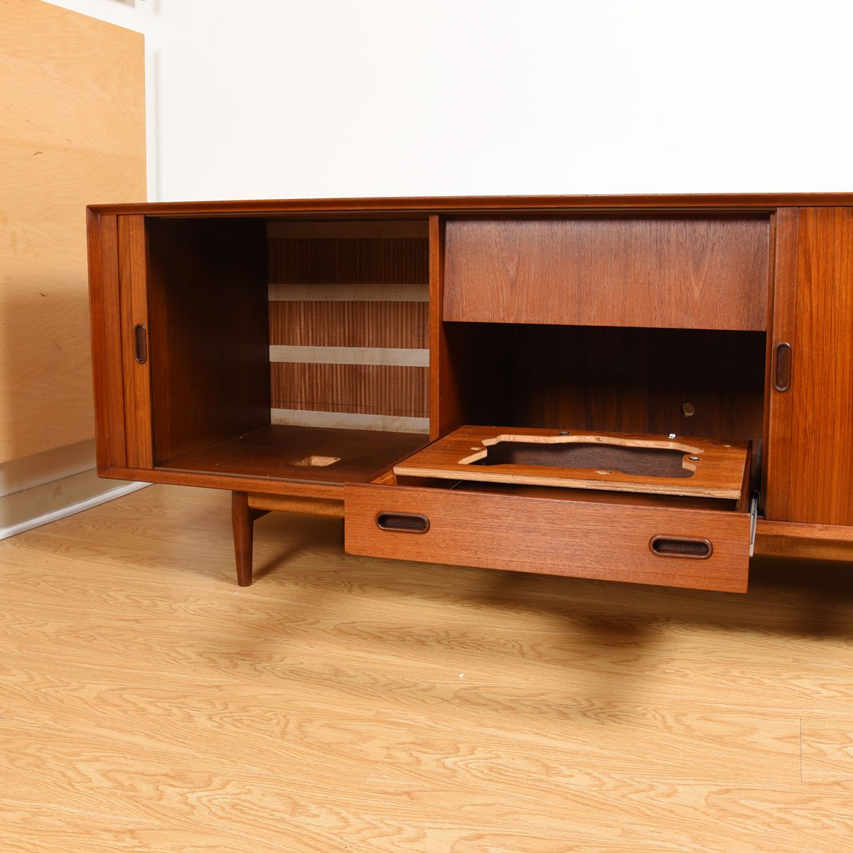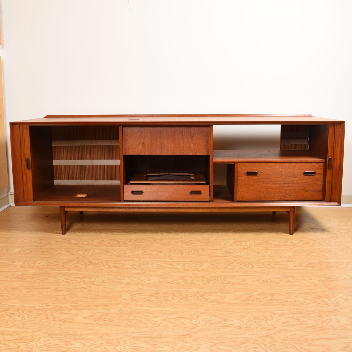 Arne Vodder 84″ Multi-Functional Stereo Media Cabinet / Tambour Door Sideboard