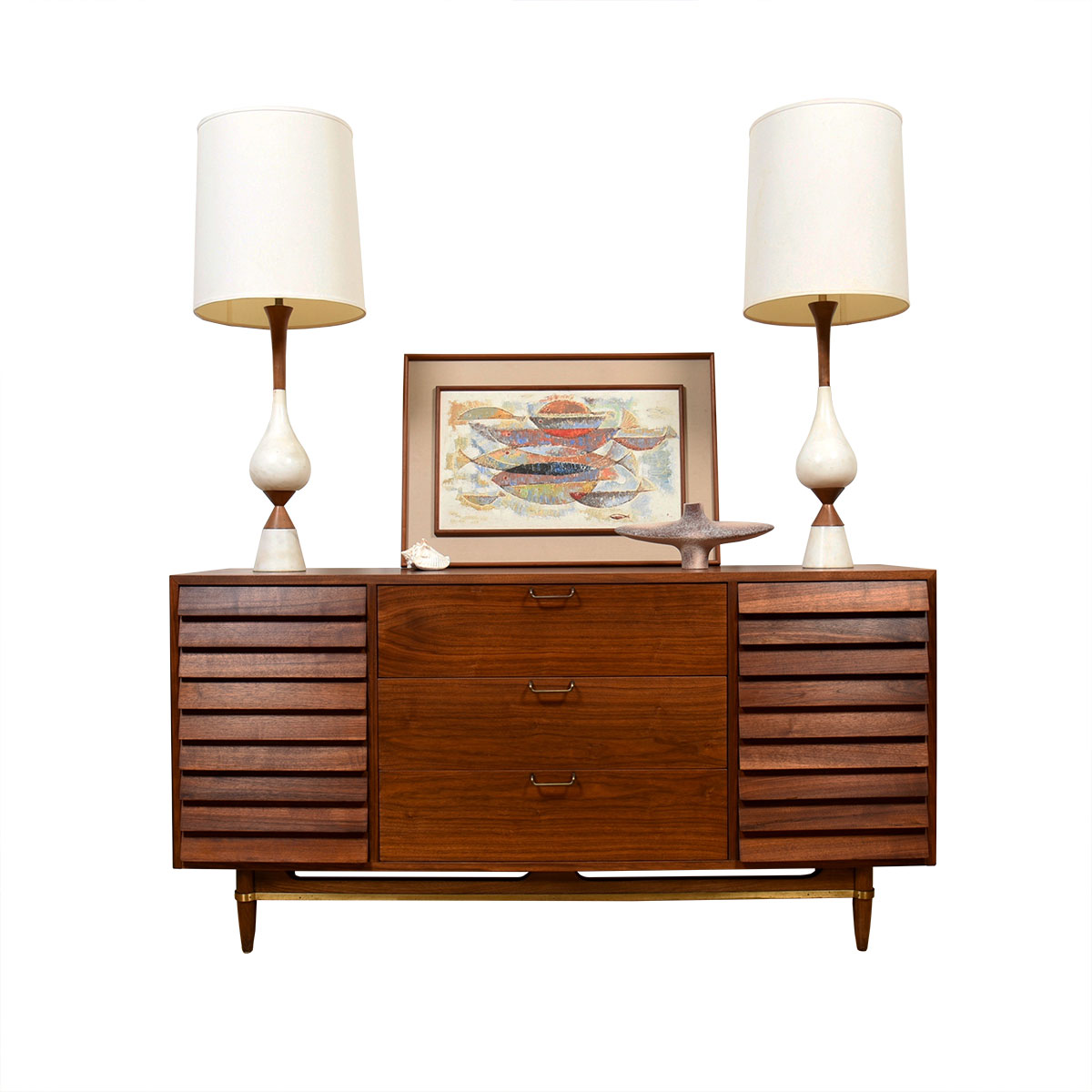 Louvered Front Walnut Dresser | Credenza — Mid Century Modern
