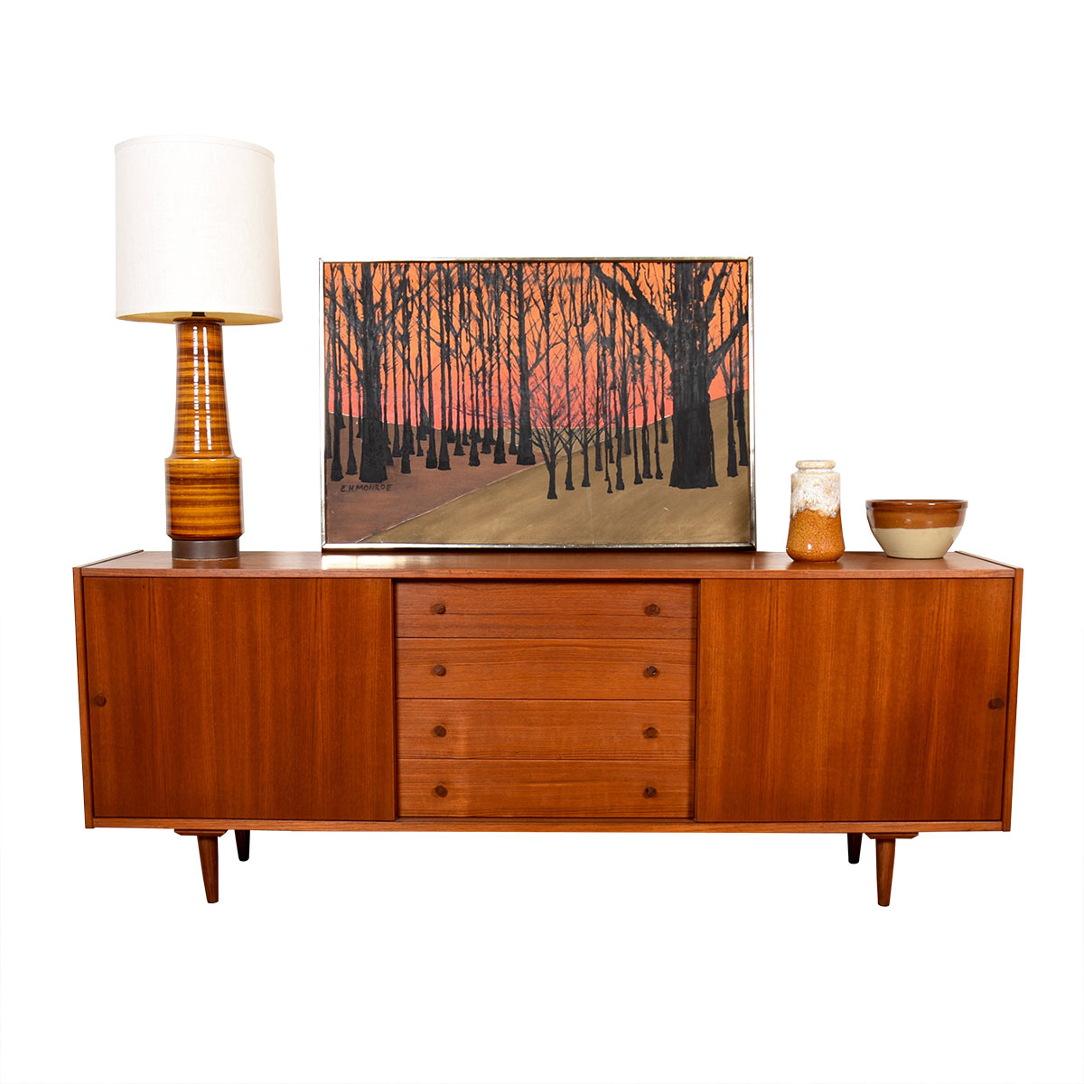 - A central column of drawers is flanked by a sliding door on either side in this classic Danish Modern sideboard