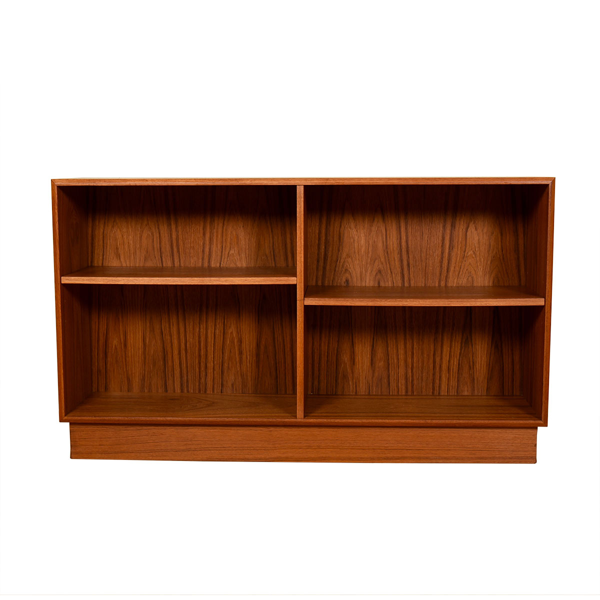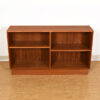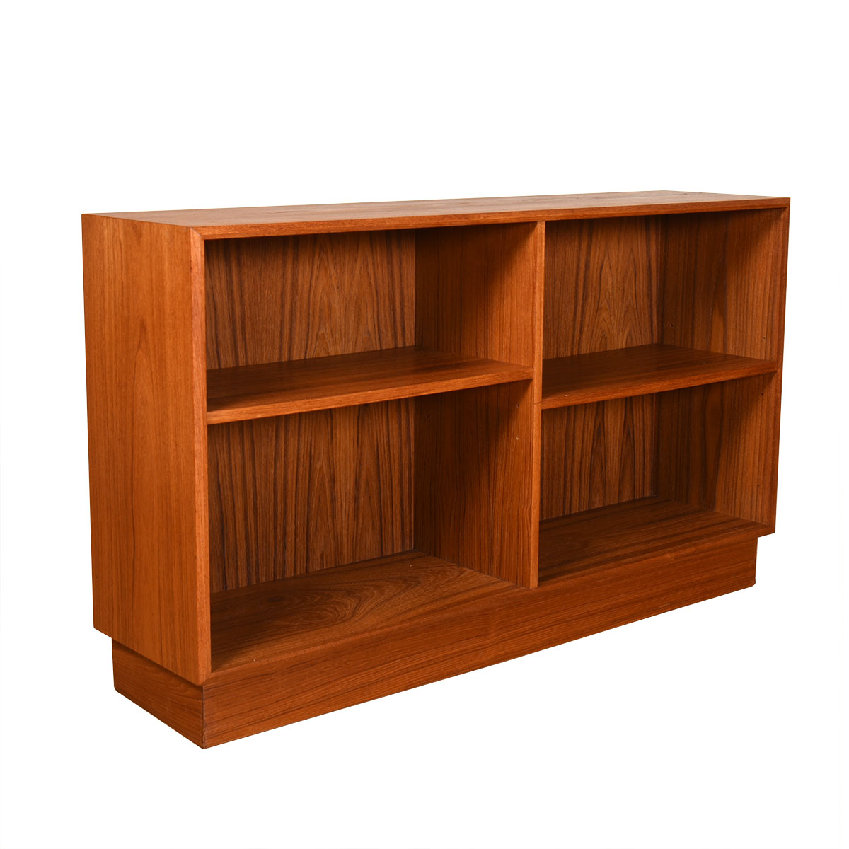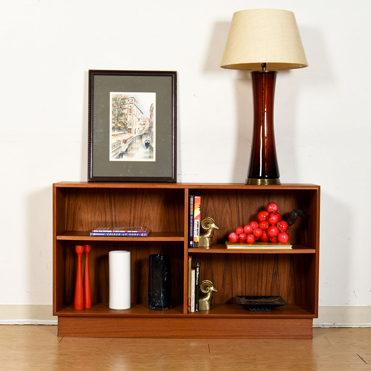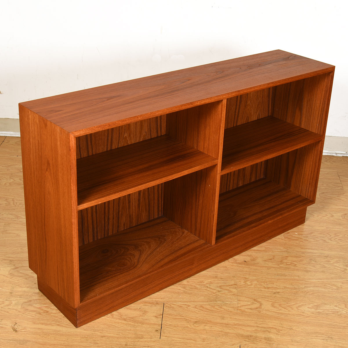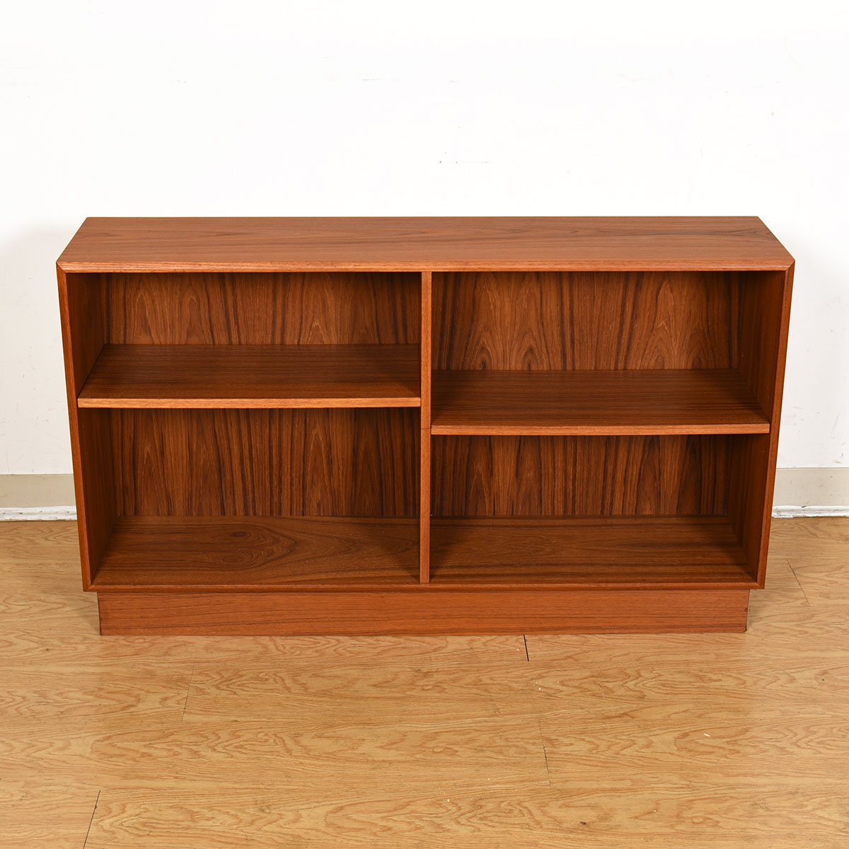 Low Danish Teak Beveled-Edge 48″ Bookcase w. Adjustable Shelves
