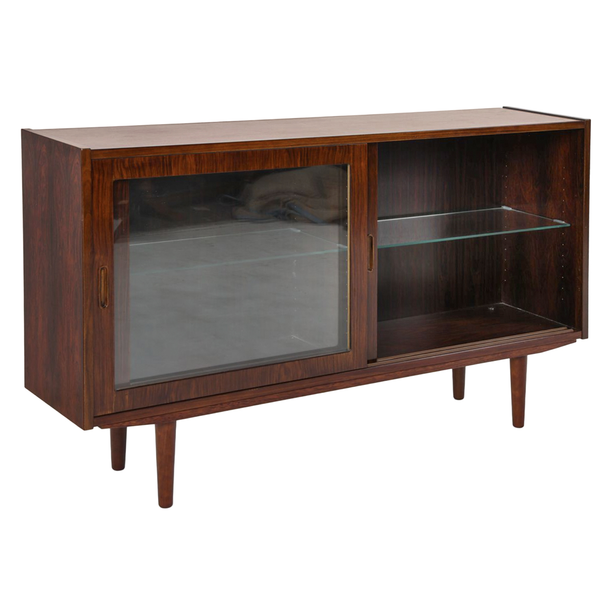Low Media Cabinet | Bookcase | Display Cabinet w Sliding Glass Doors in Rosewood