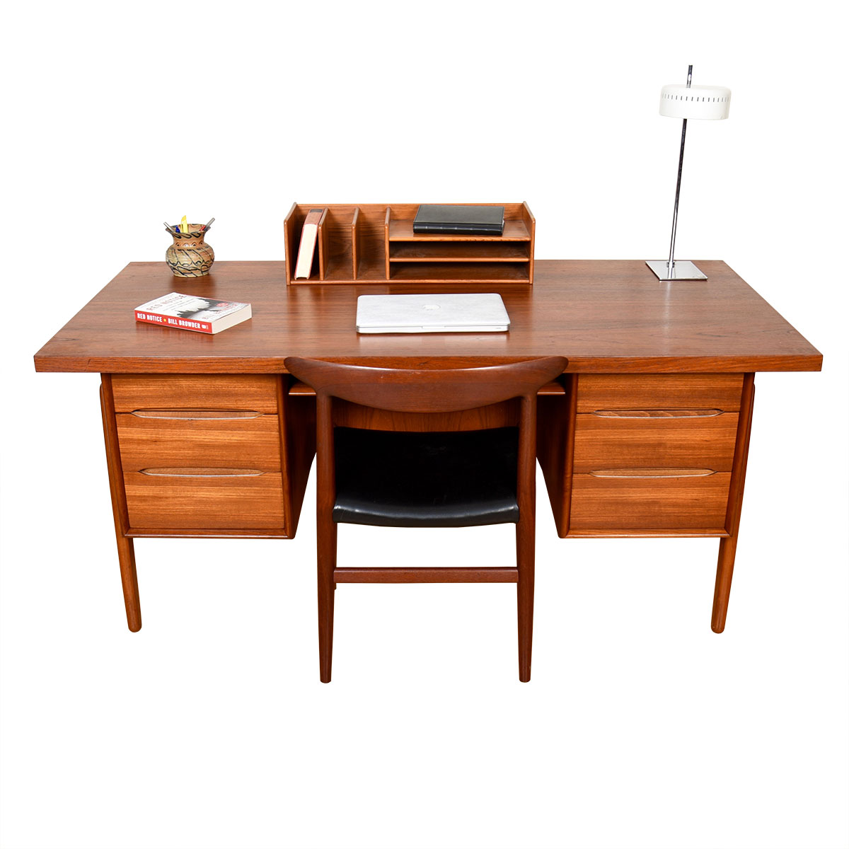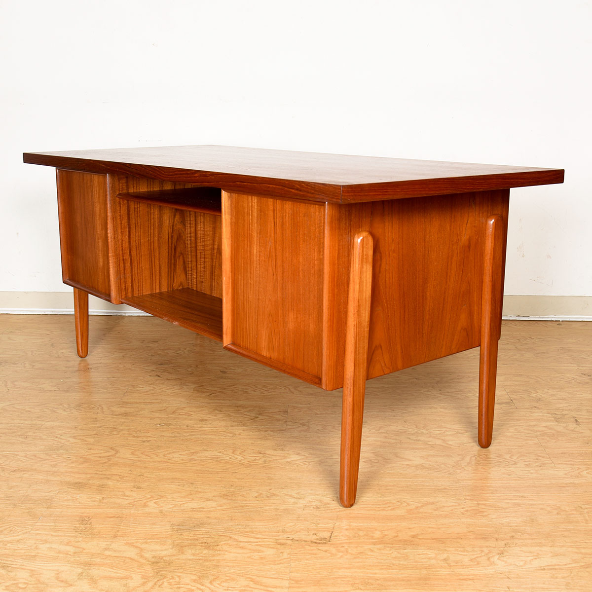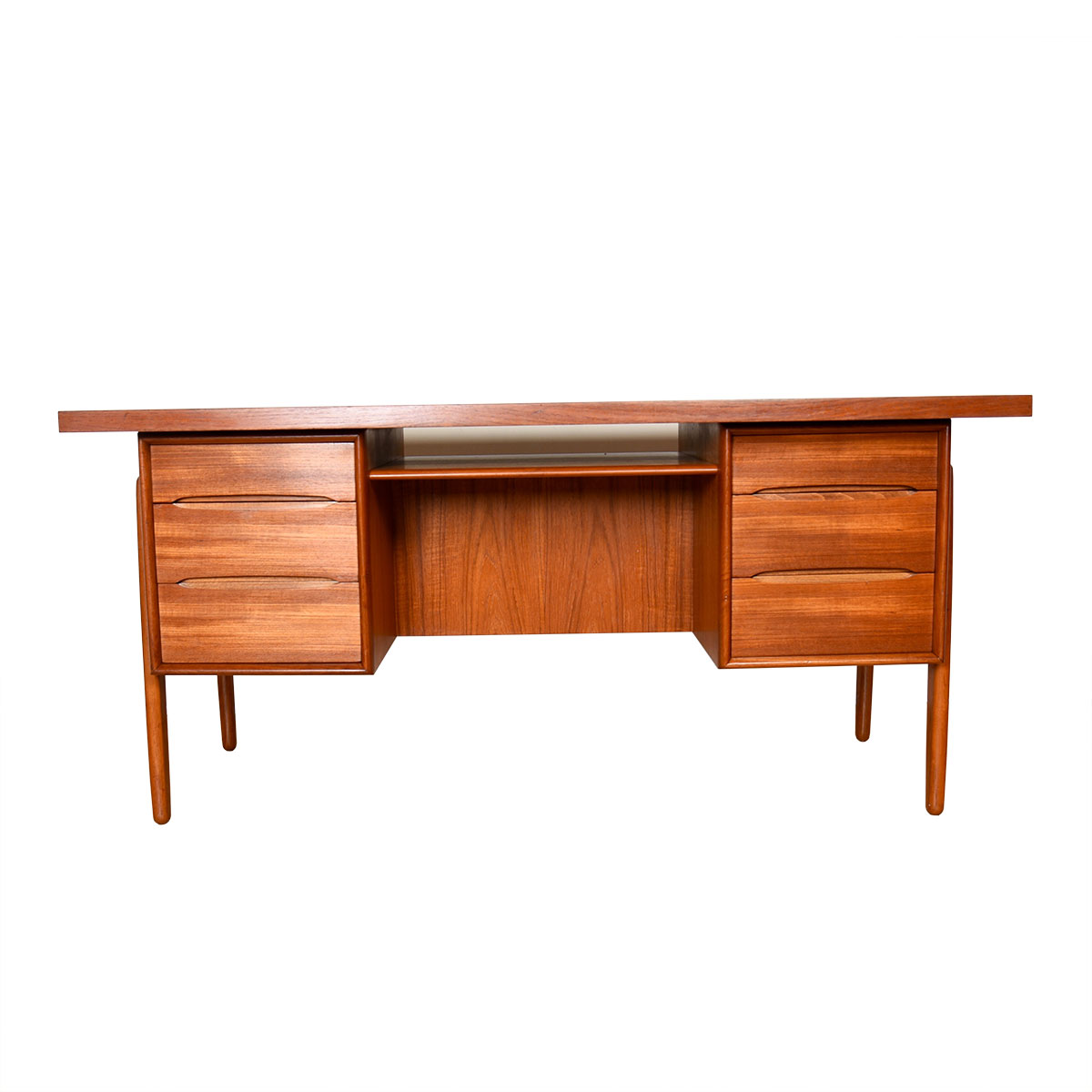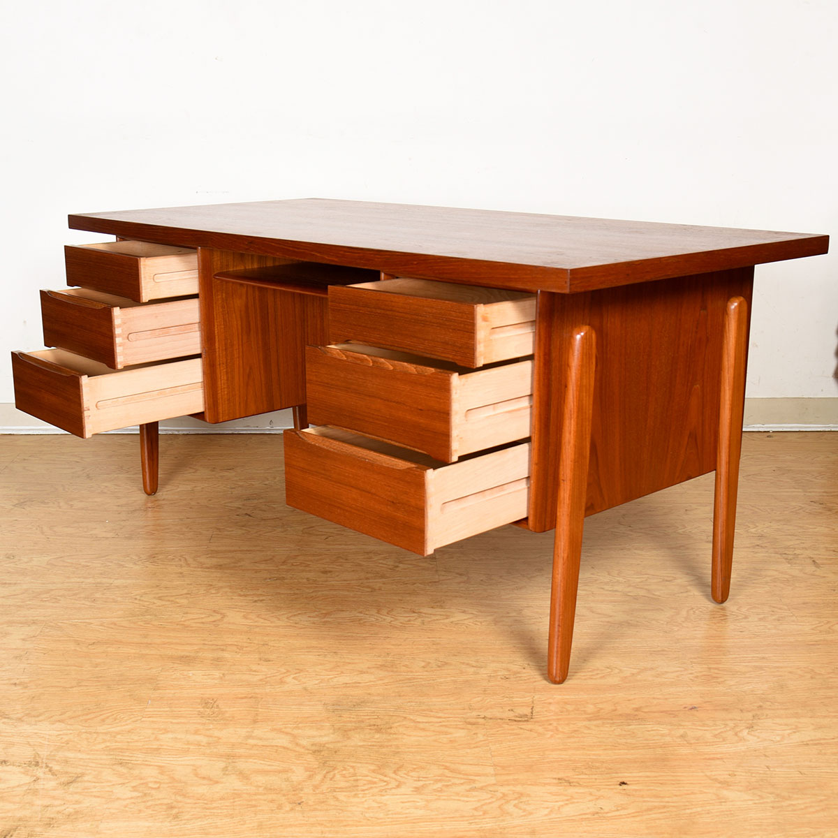 - Stunning Danish Modern Executive Desk in Teak with Finised Front and Two Columns of 3 Drawers Flanking the Kneehole