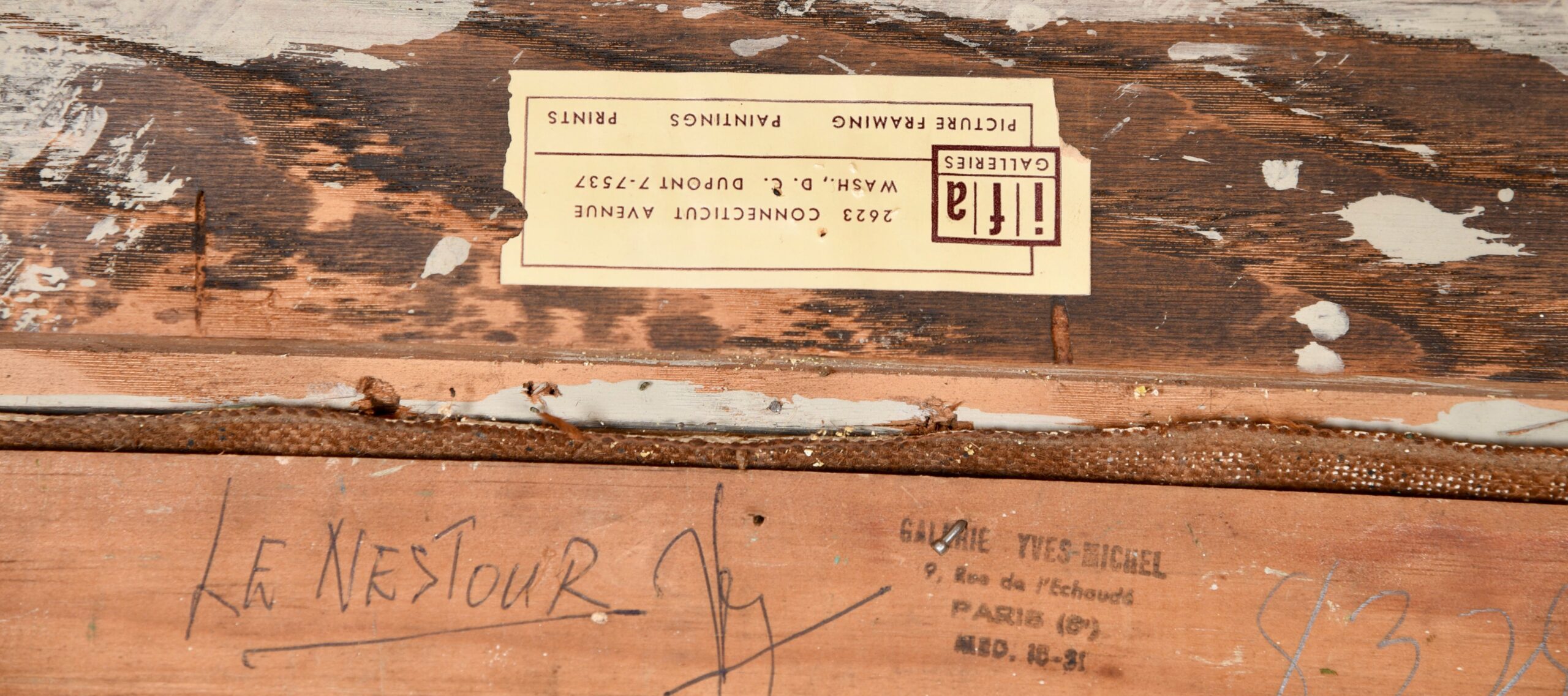 To arrange purchase or for more information about the Maurice Le Nestour French Cubist Abstract, Oil on Burlap 1961 please call us at 202.882.1648 or email us at info@modernmobler.com