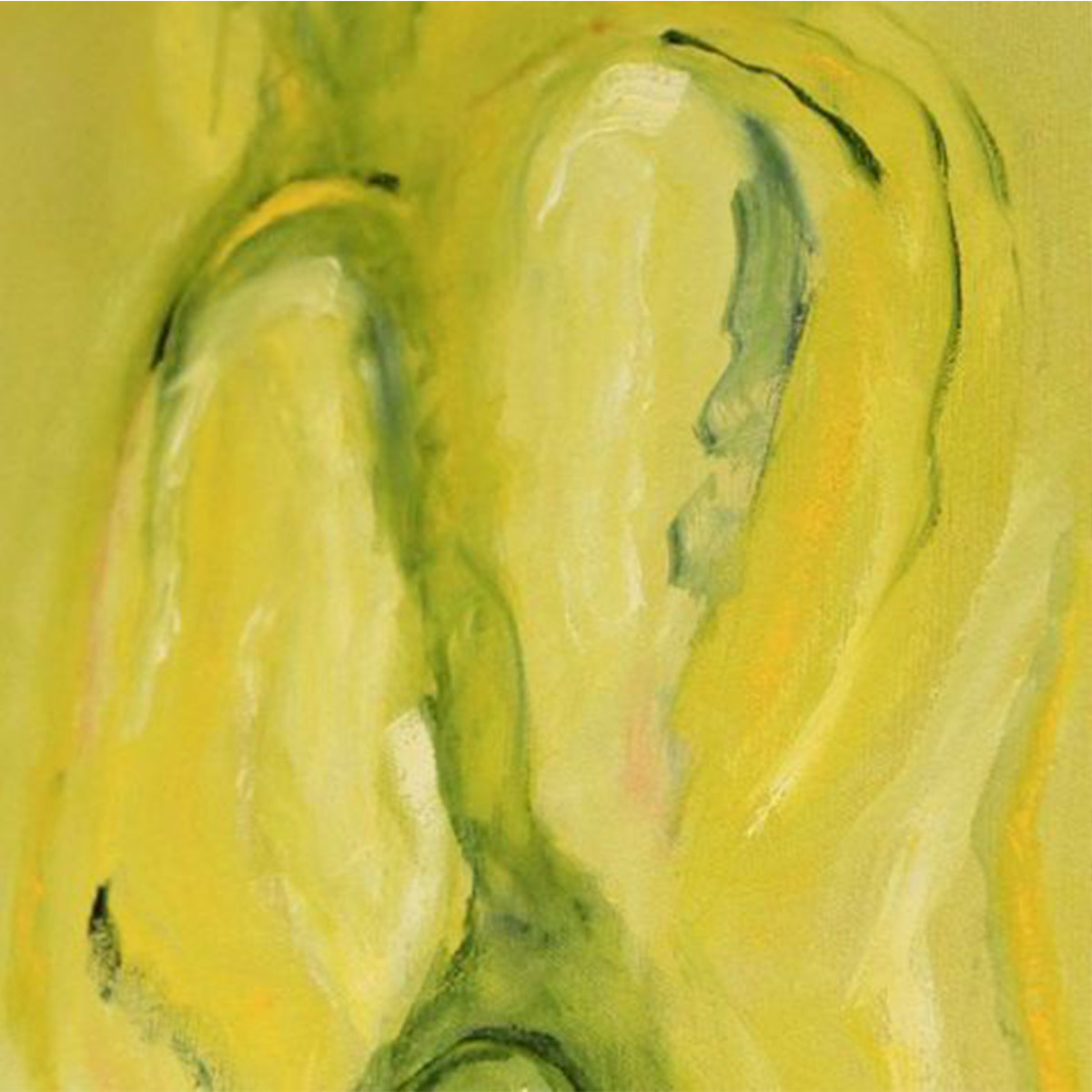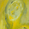 Modernist figural study of a woman painted in oil on canvas by midcentury artist Nora Shock. The abstract face and torso are captured primarily in bright yellows and grays. Nice period frame with double gold border. Simply rendered the piece is evocative of the model’s aura.