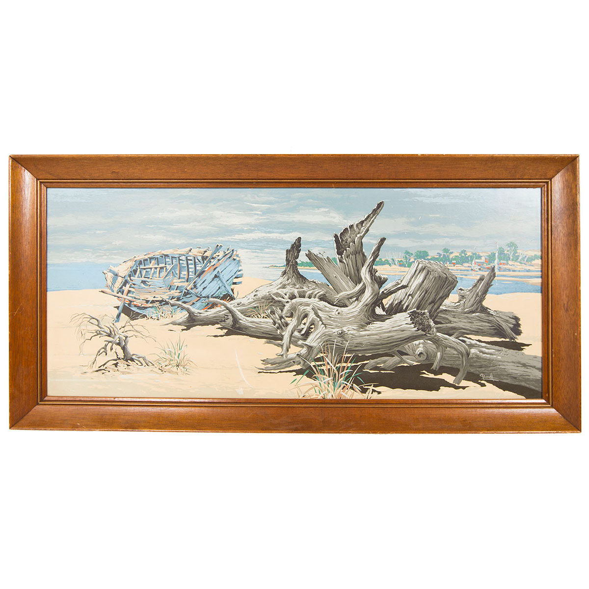Large Vintage Beach Scene Artwork