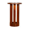 - Tall slats of wood arranged in a circle around a circular base support a circular table top