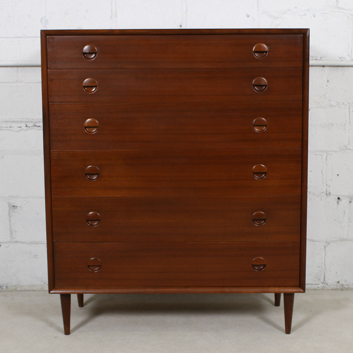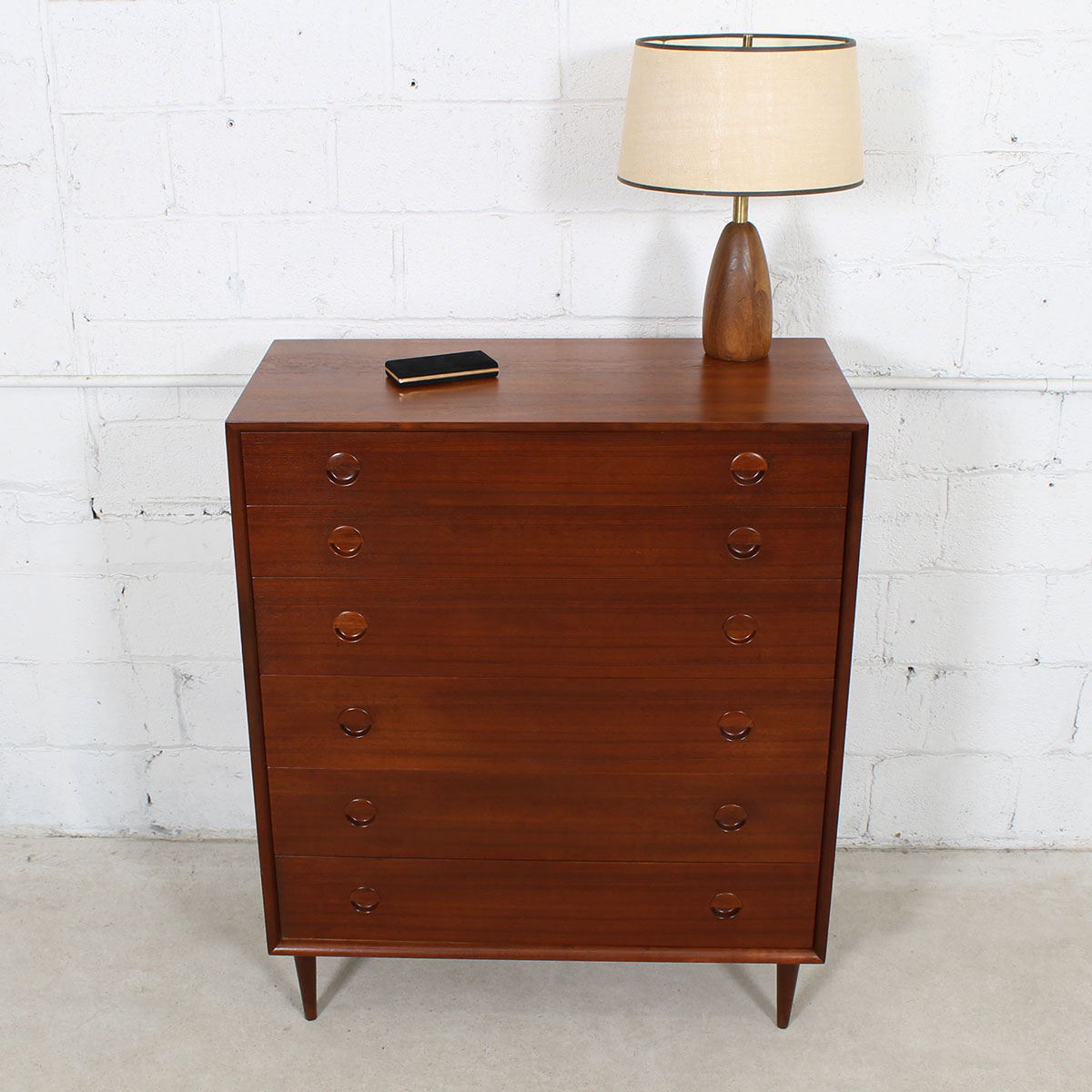 Danish Teak 6 Drawer Dresser with Kai Kristiansen Style Eyelid Pulls