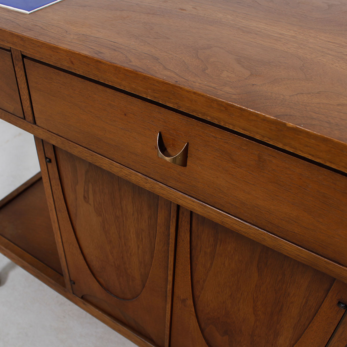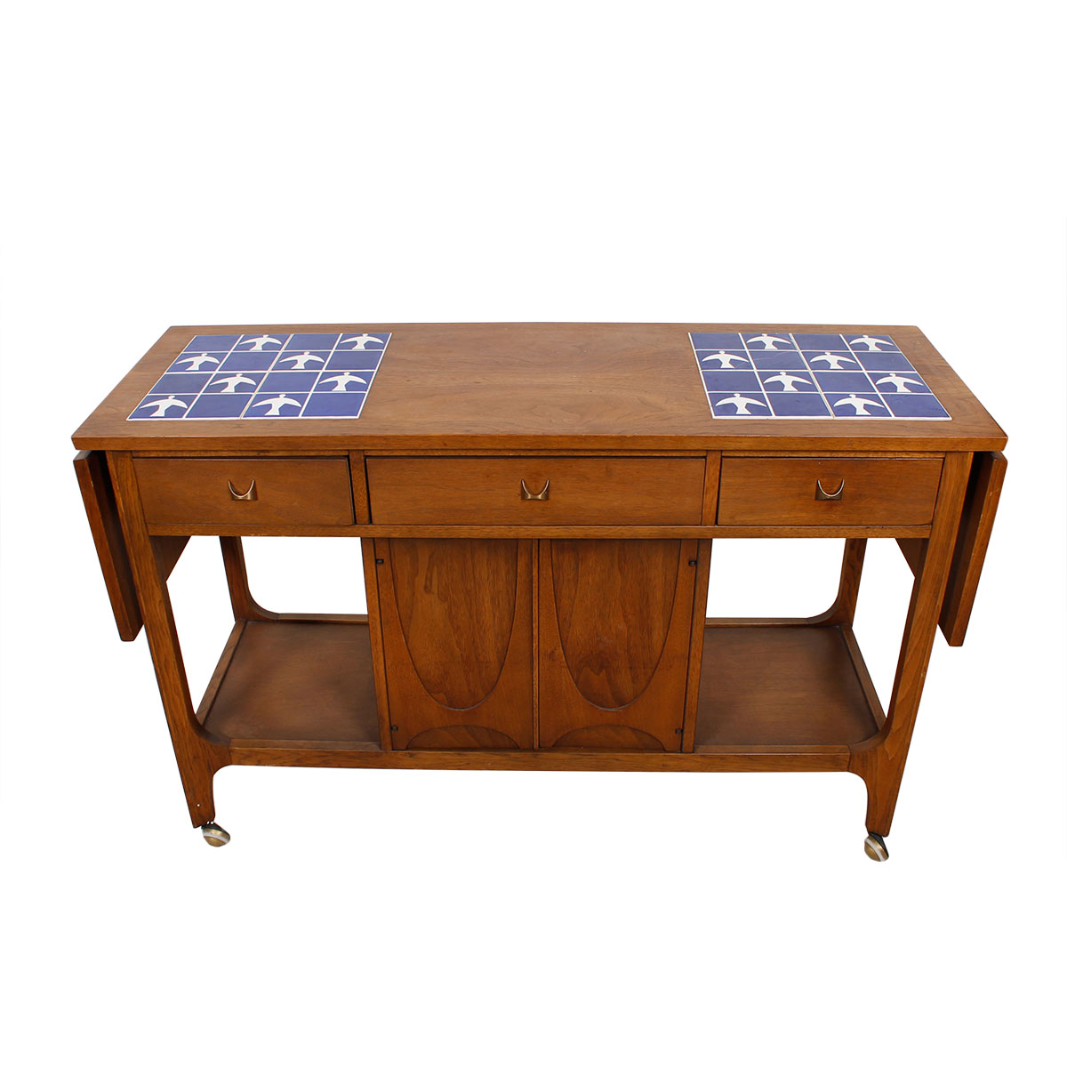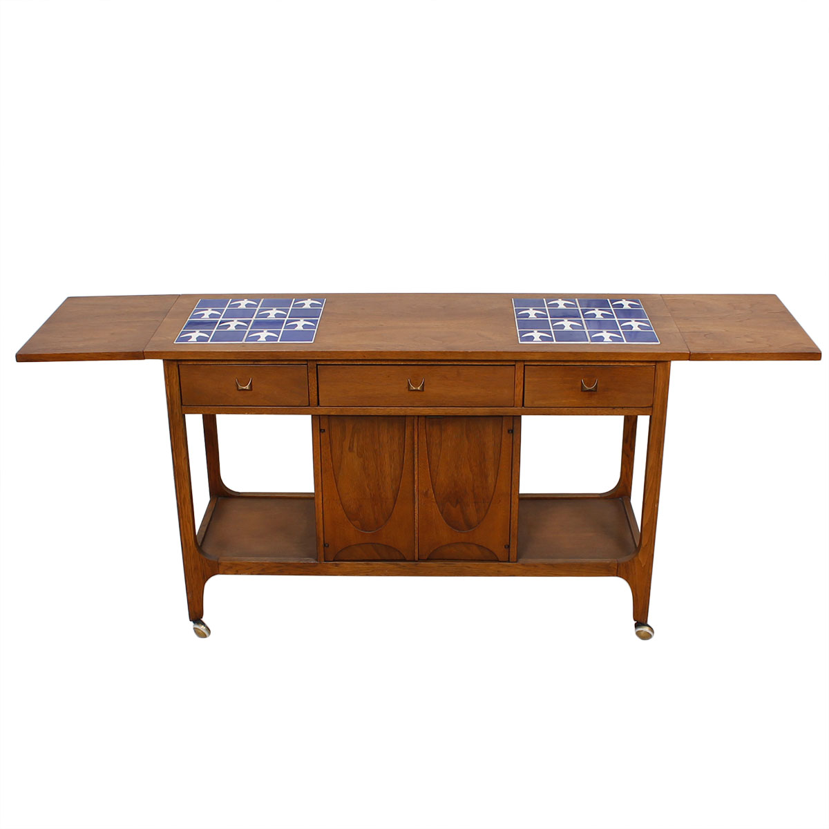 Beautiful Royal Blue Tiles atop this walnut piece with flip-up expanding sides. Finished on all sides. Wheel this piece, from America’s most popular line of walnut furniture in the 60’s, to serve & impress your guests!
