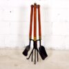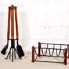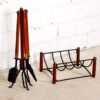 MCM Walnut & Iron Fireplace Tools and Log Holder Set