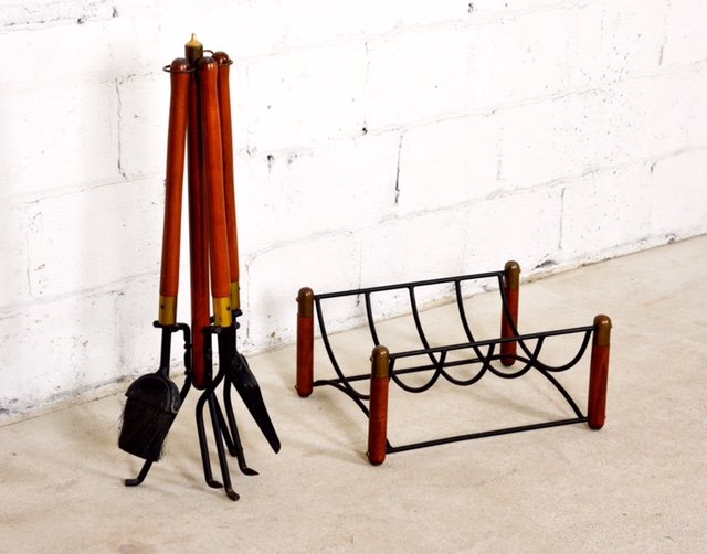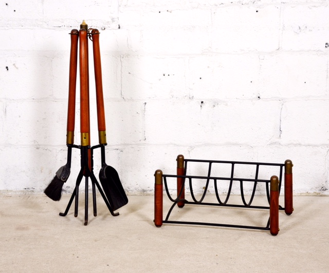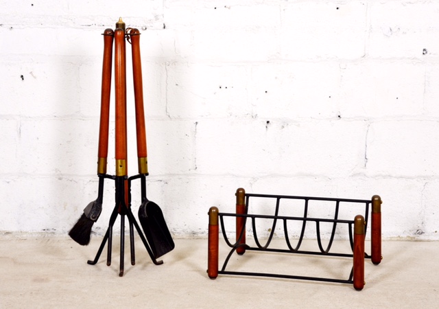 To arrange purchase or for more information about the MCM Walnut Brass & Iron Fireplace Tools & Log Holder Set please call us at 202.882.1648 or email us at info@modernmobler.com