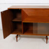 The piece appears to float but actually sits up on a base with atomic style legs. The walnut is beautifully grained and has mellowed to a sumptuous golden color.