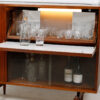 Rare 1950s Walnut ‘Diamond Front’ Lighted Bar Cabinet