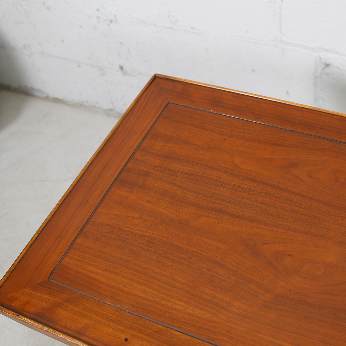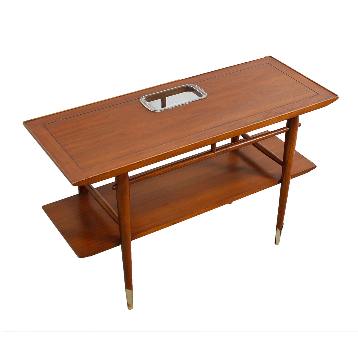 MCM Walnut Console Table w/ Shelf & Glass Insert