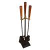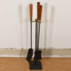 Mid Century Brass + Wood Accented Iron Fireplace Tool Set
