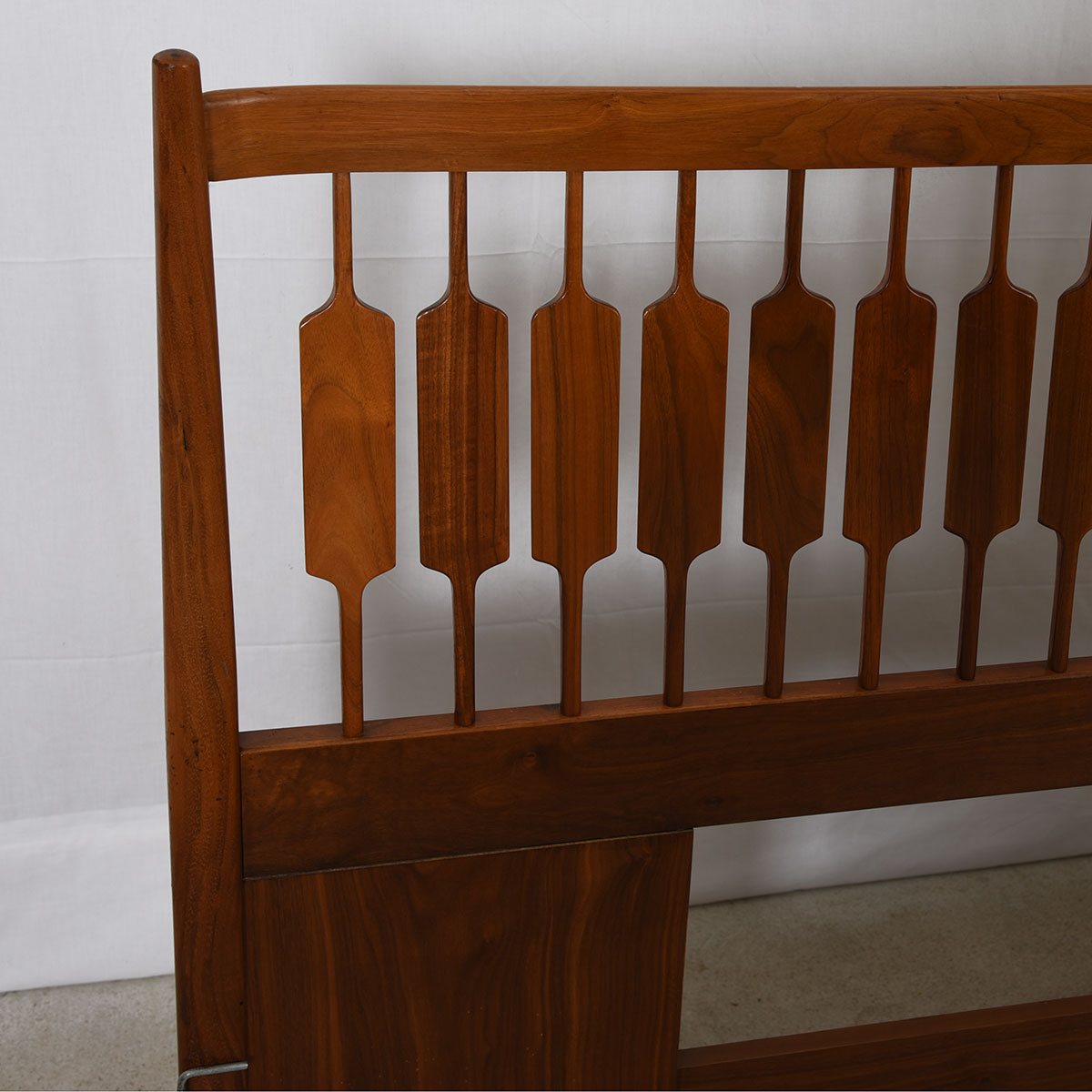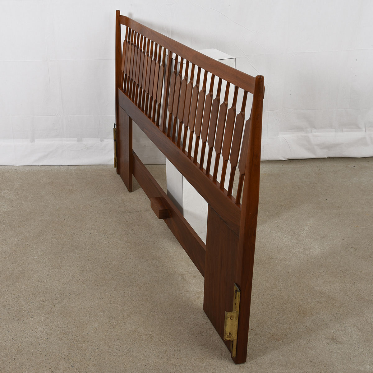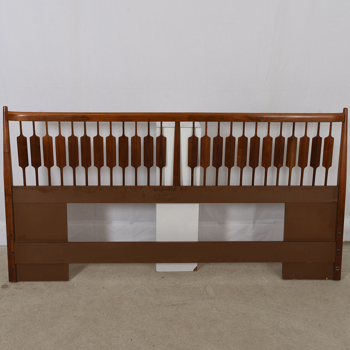 Absolutely gorgeous MCM headboard from the Drexel Declaration line in the hard to find king size. Look at the beautiful lines on the vertical slats of the back rest. The walnut is of the highest quality and has aged to perfection.