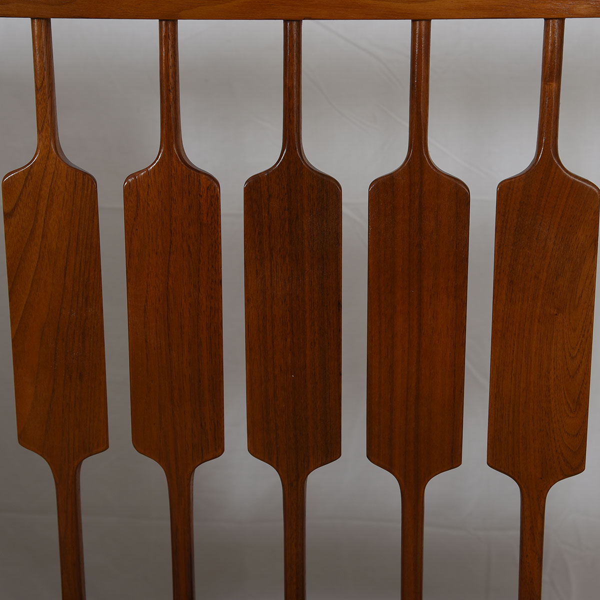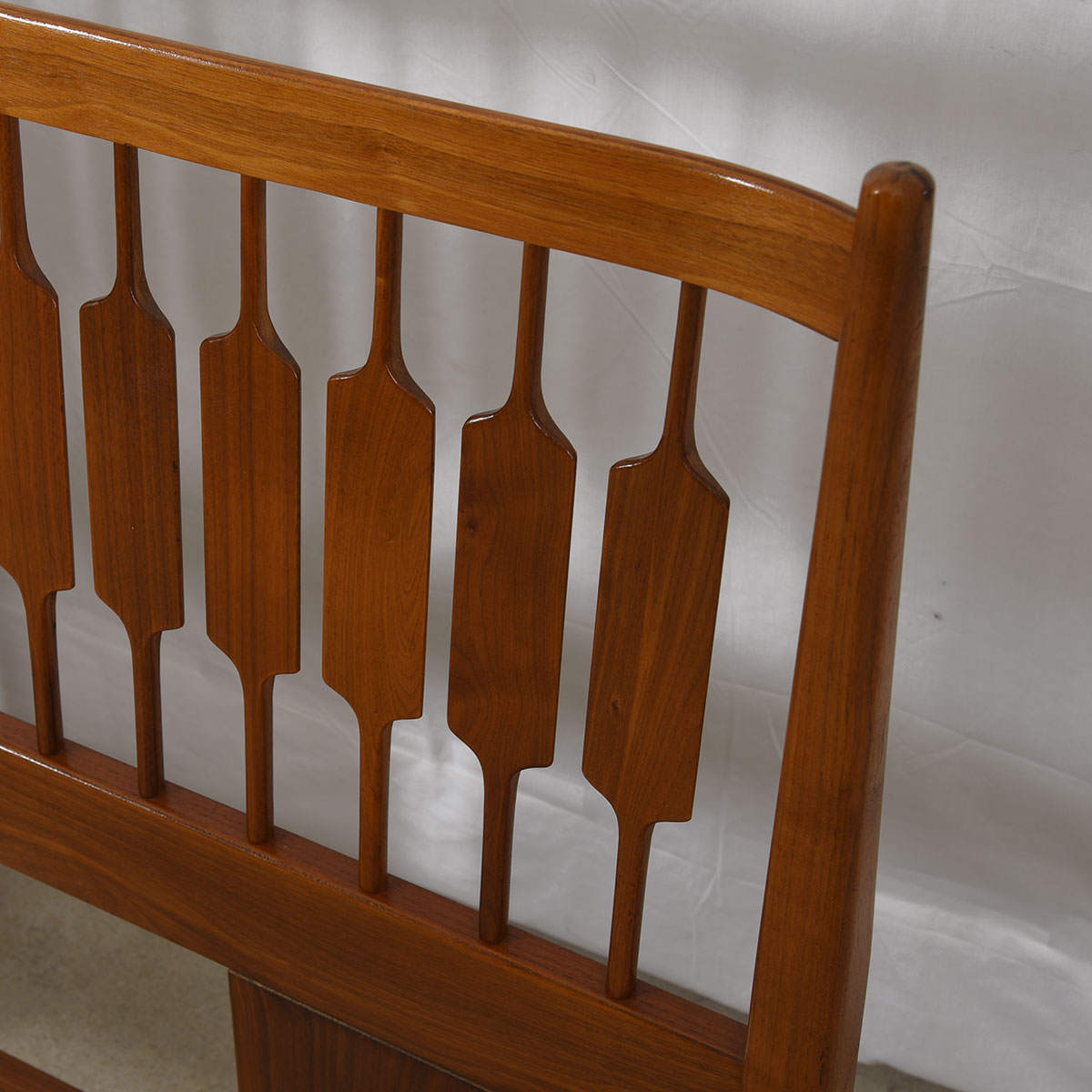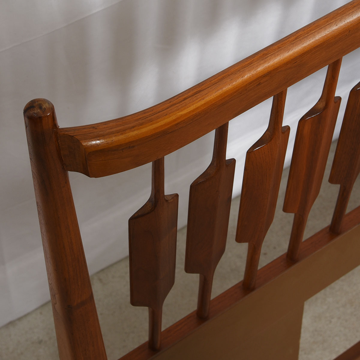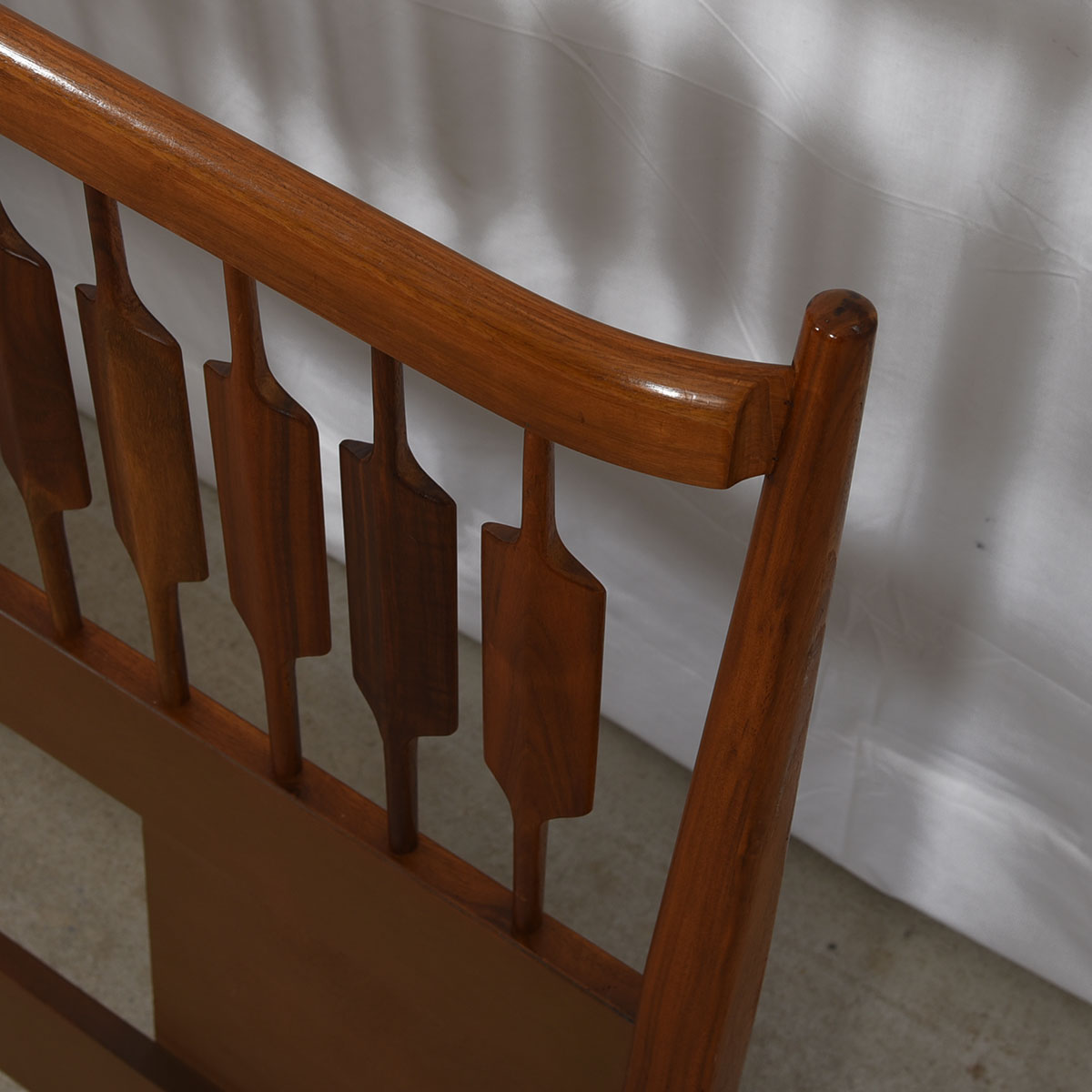 Absolutely gorgeous MCM headboard from the Drexel Declaration line in the hard to find king size. Look at the beautiful lines on the vertical slats of the back rest. The walnut is of the highest quality and has aged to perfection.