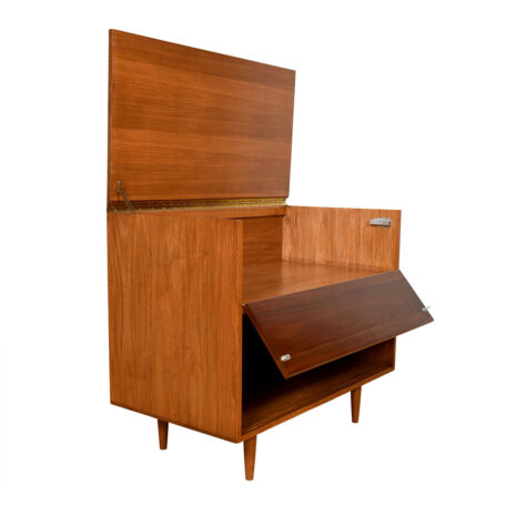 Mid Century Dual-Access Walnut Media Cabinet w: Top + Front Access