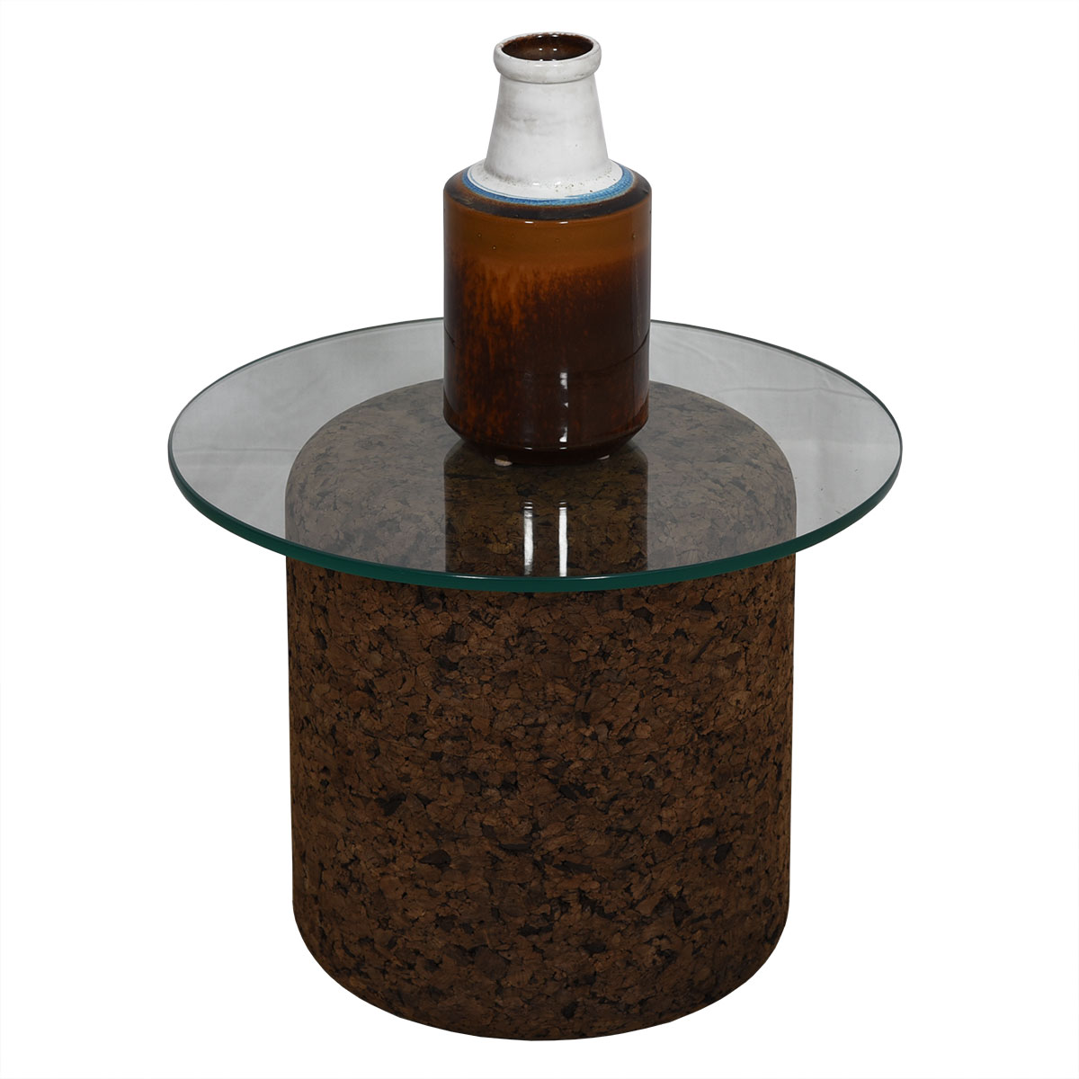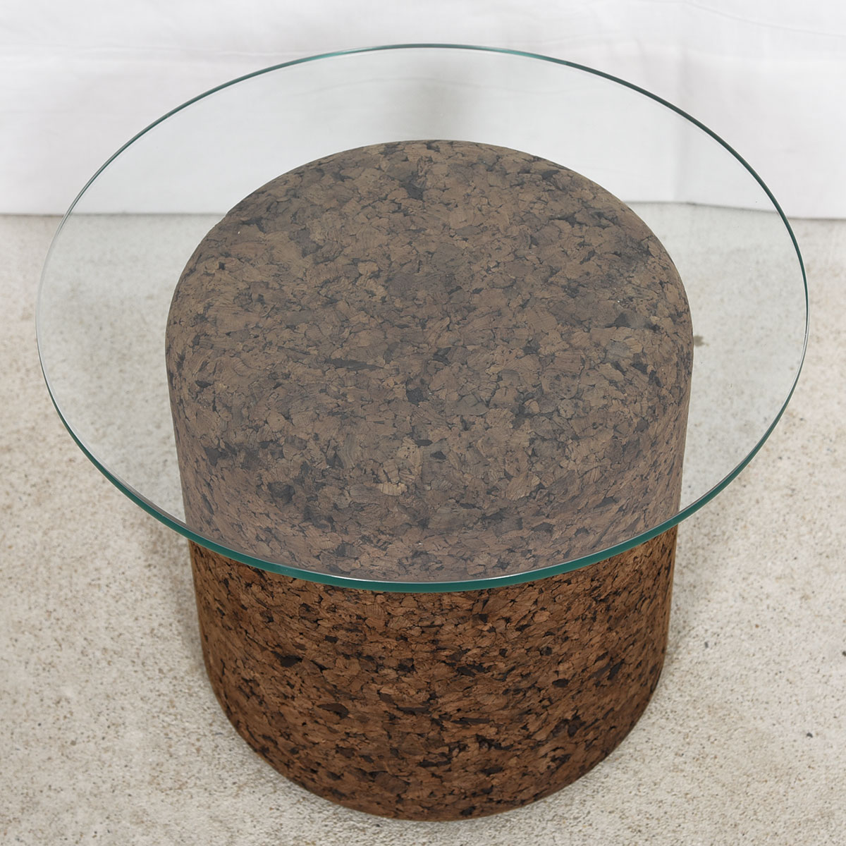 » » » Mid-Century Glass Top Accent Table w/ Cork Base
