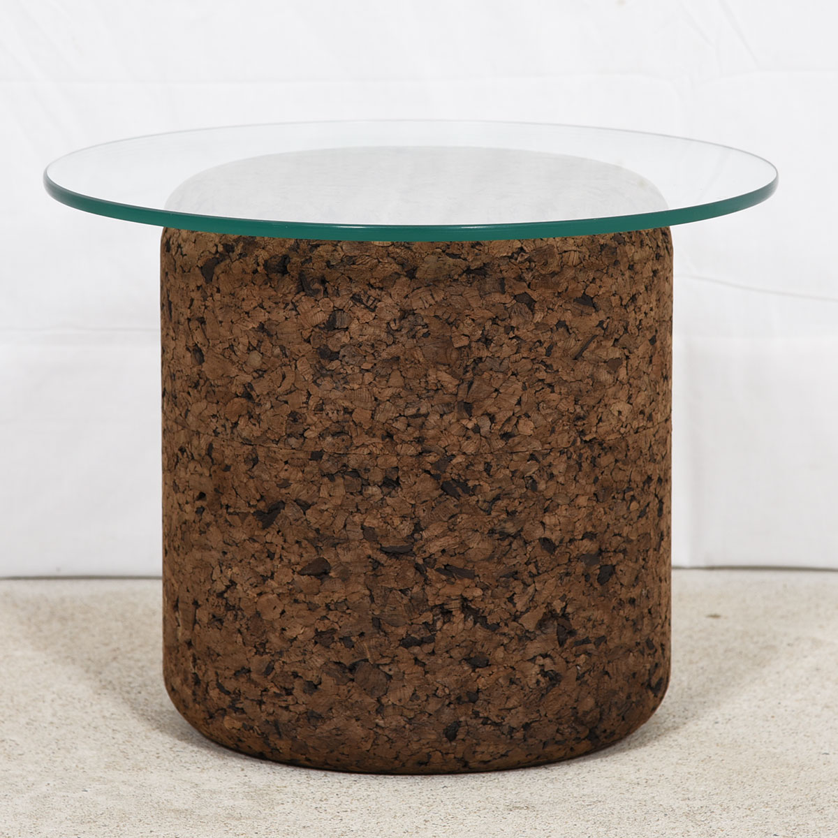 Mid-Century Glass Top Accent Table w/ Cork Base