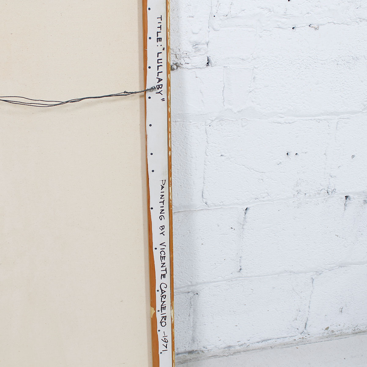 Signed by Artist Vicente Carneiro 1971. Born in Brazil, in 1927, Vicente Carneiro, won international acclaim for his abstract art. He was one of the leading architects and scenographers responsible for the decoration of Rio’s famous Carnival Balls. Carneiro attended the School of Fine Arts in Rio des Janeiro and the School of Architecture at the University of Brazil.