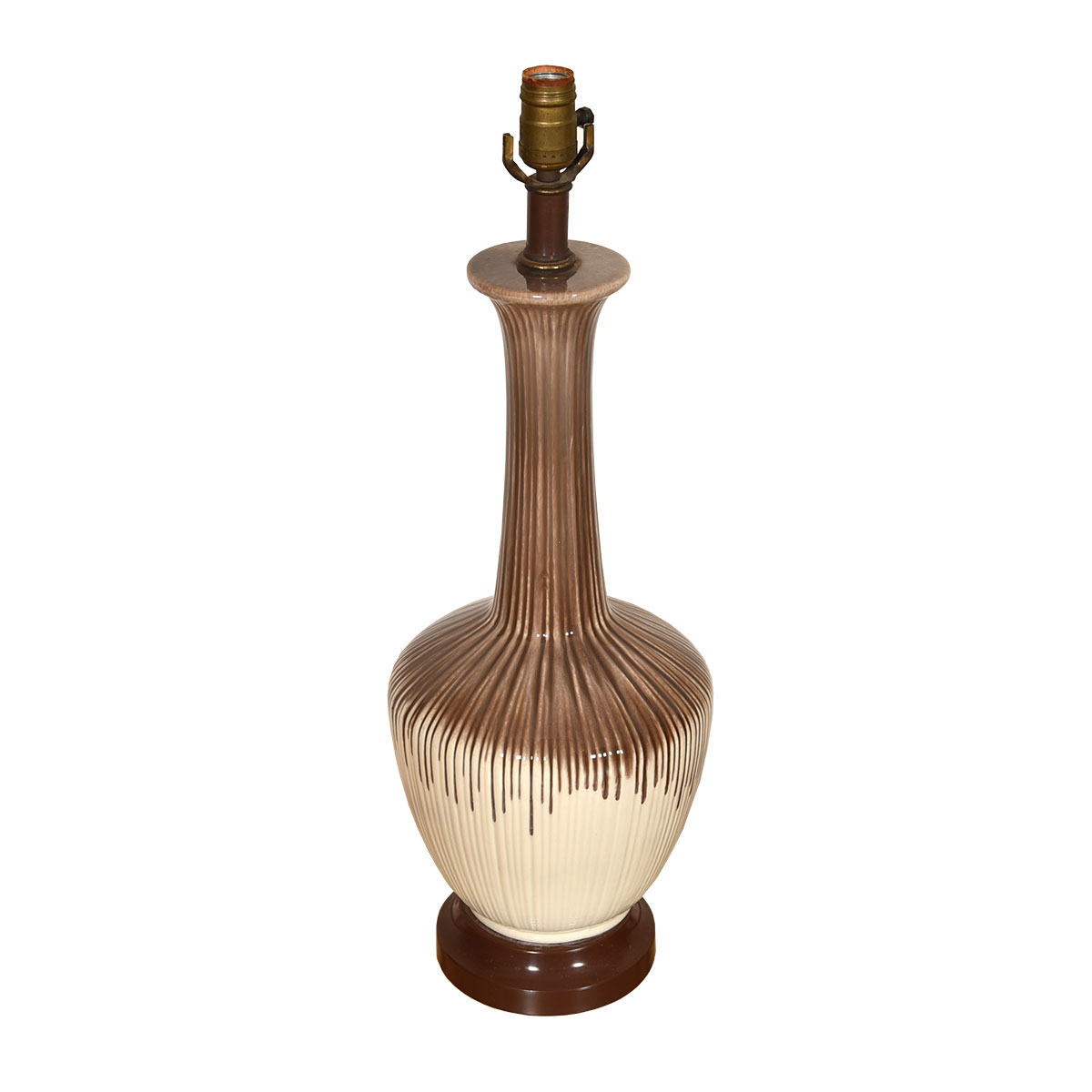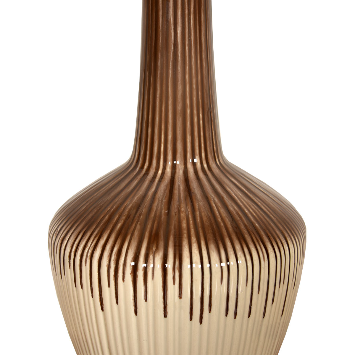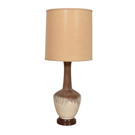 - white underglaze with brown glaze placed on the upper part and allowed to drip onto the white portion below
