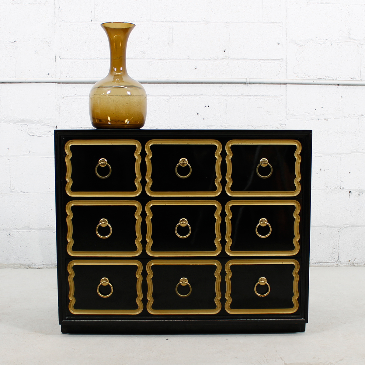 To arrange purchase or for more information about the Mid Century Dorothy Draper Black Laquer ‘Espana’ Dresser Chest by Heritage Henredon please call us at 202.882.1648 or email us at info@modernmobler.com