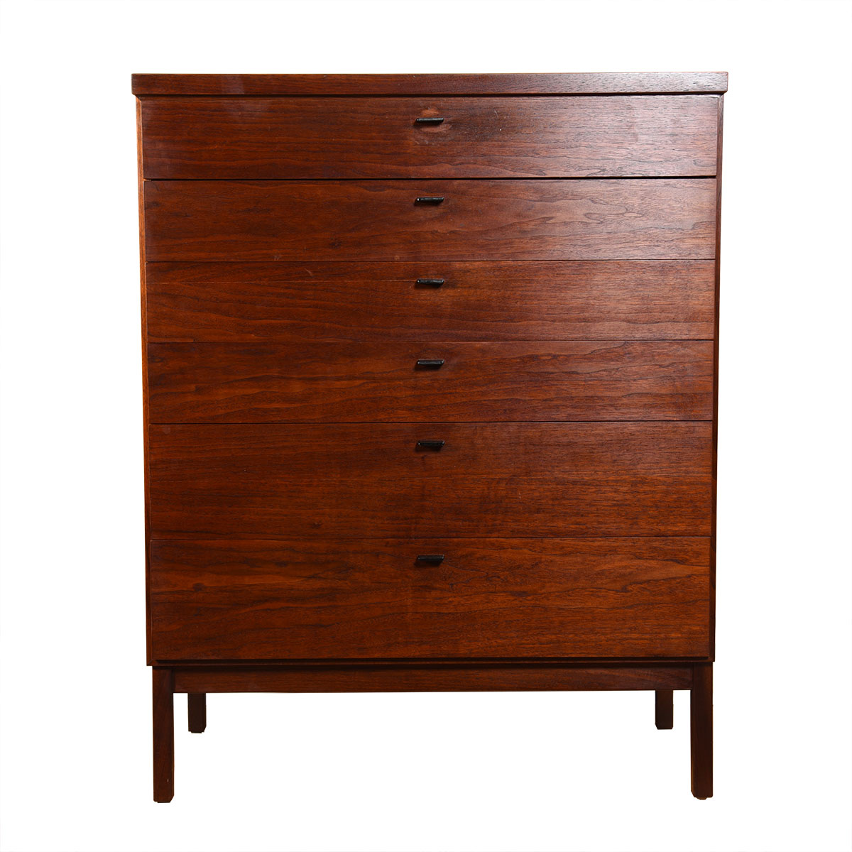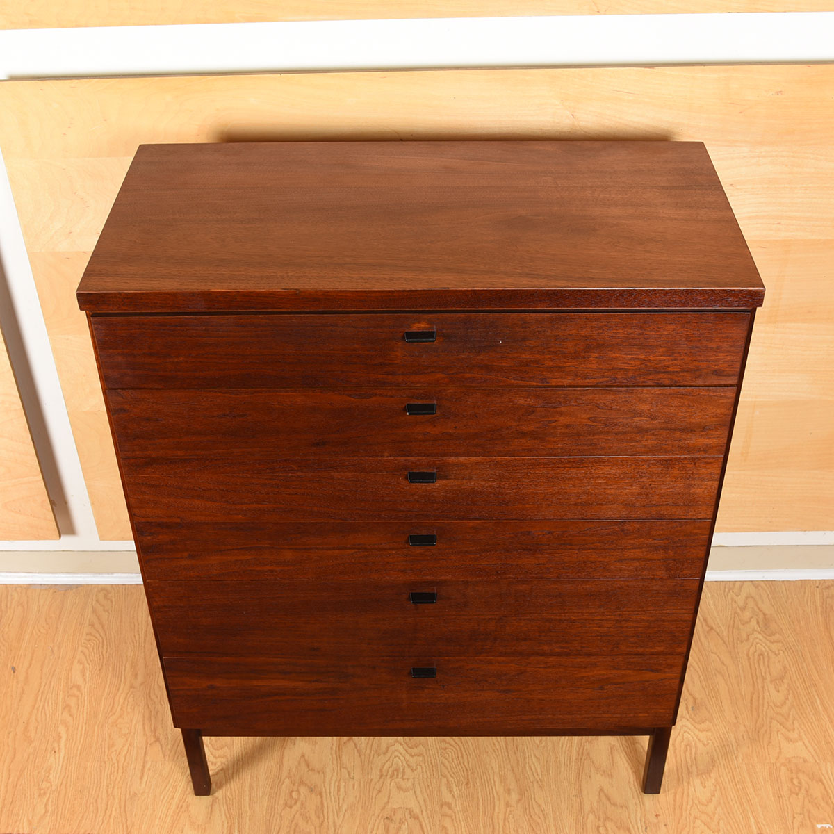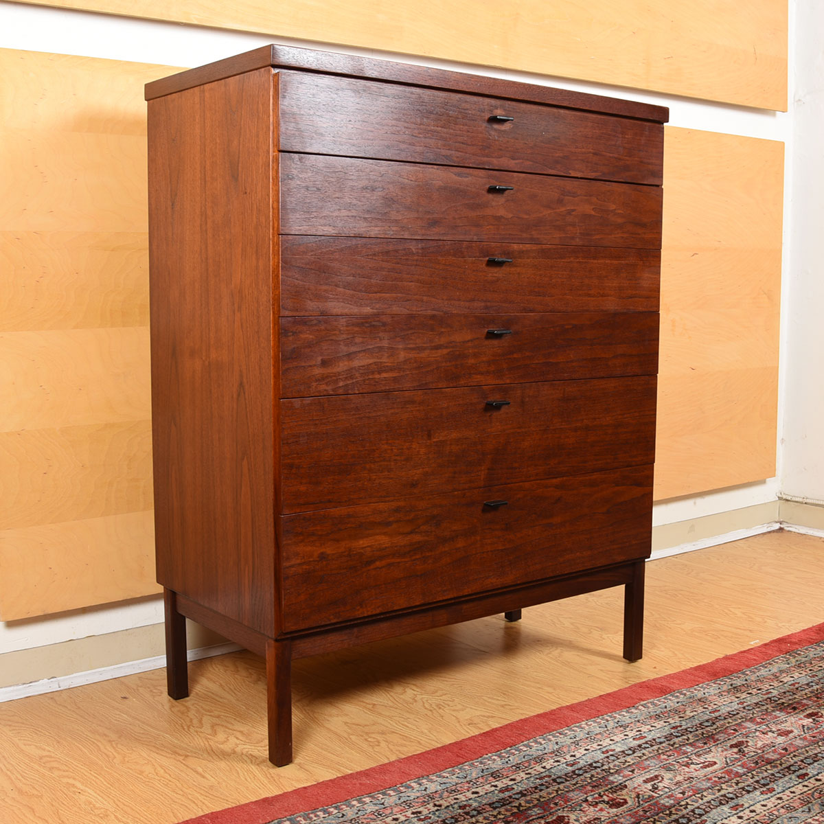 » » » Mid Century Modern Tall Walnut + Black Handle Dresser