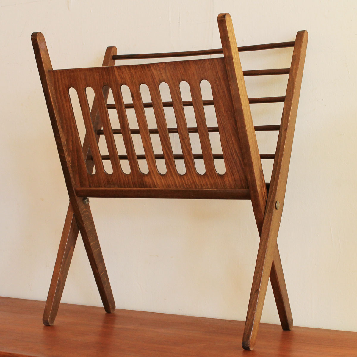 Mid Century Modern Walnut Folding Magazine Rack