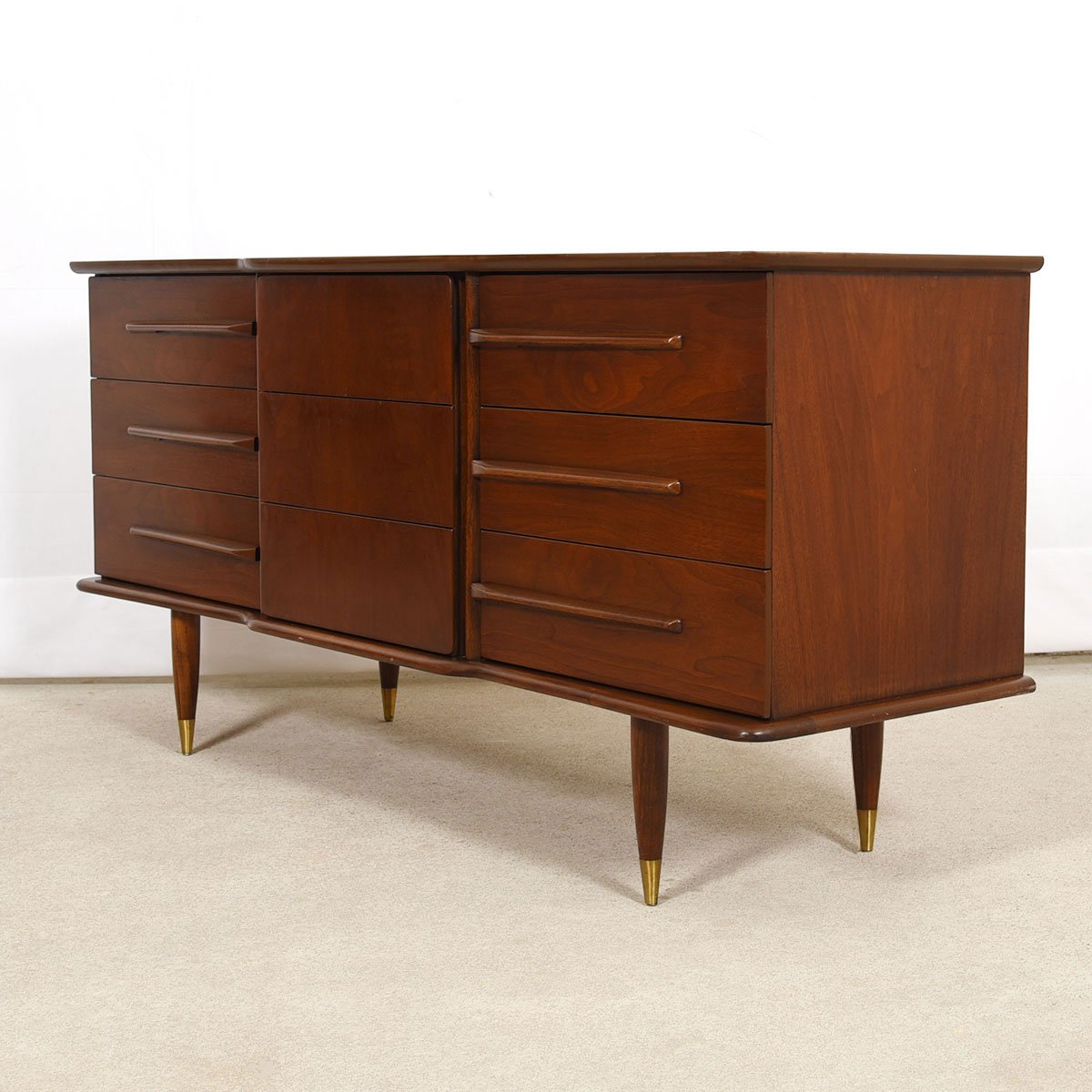 Mid Century Modern 9-Drawer Walnut Dresser