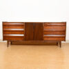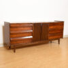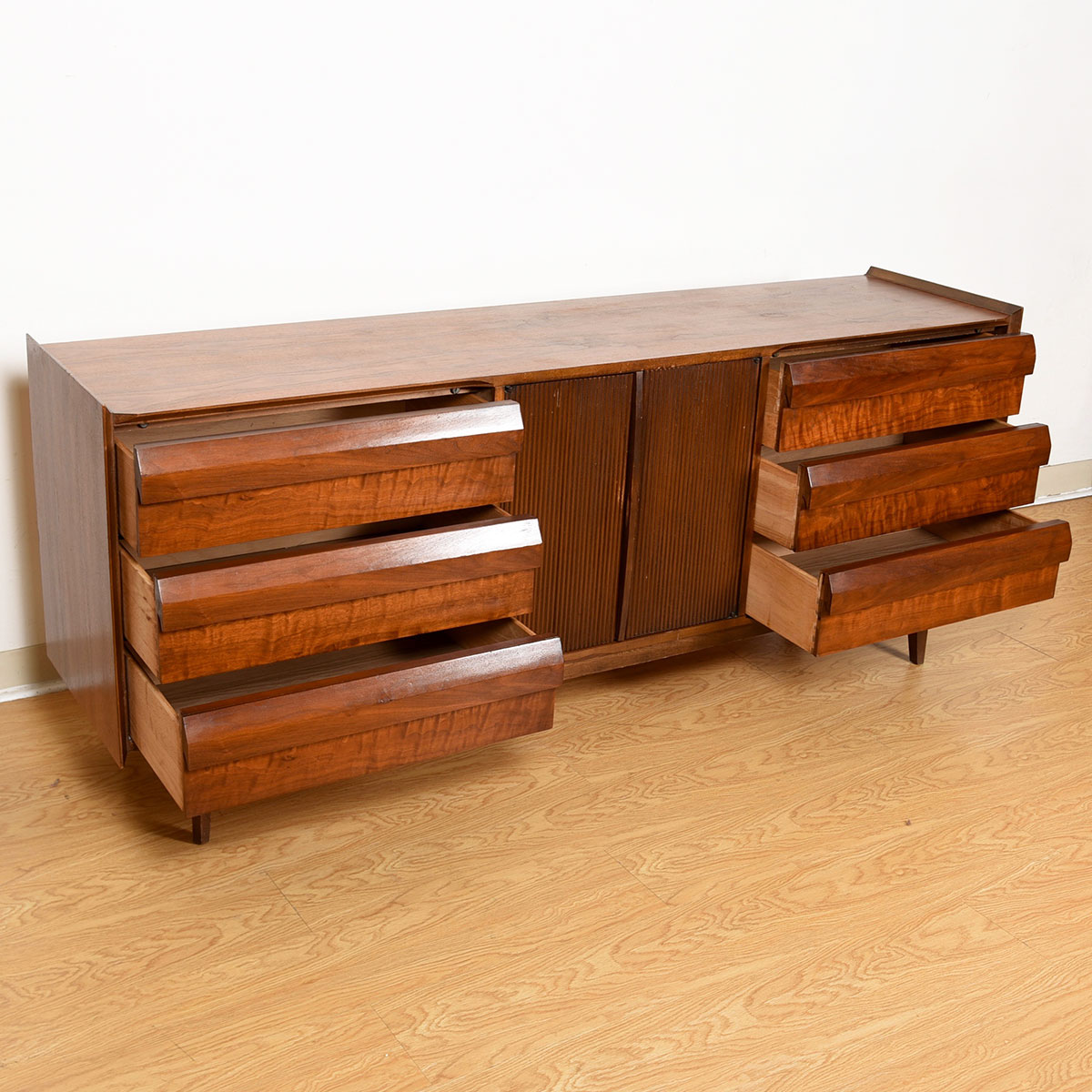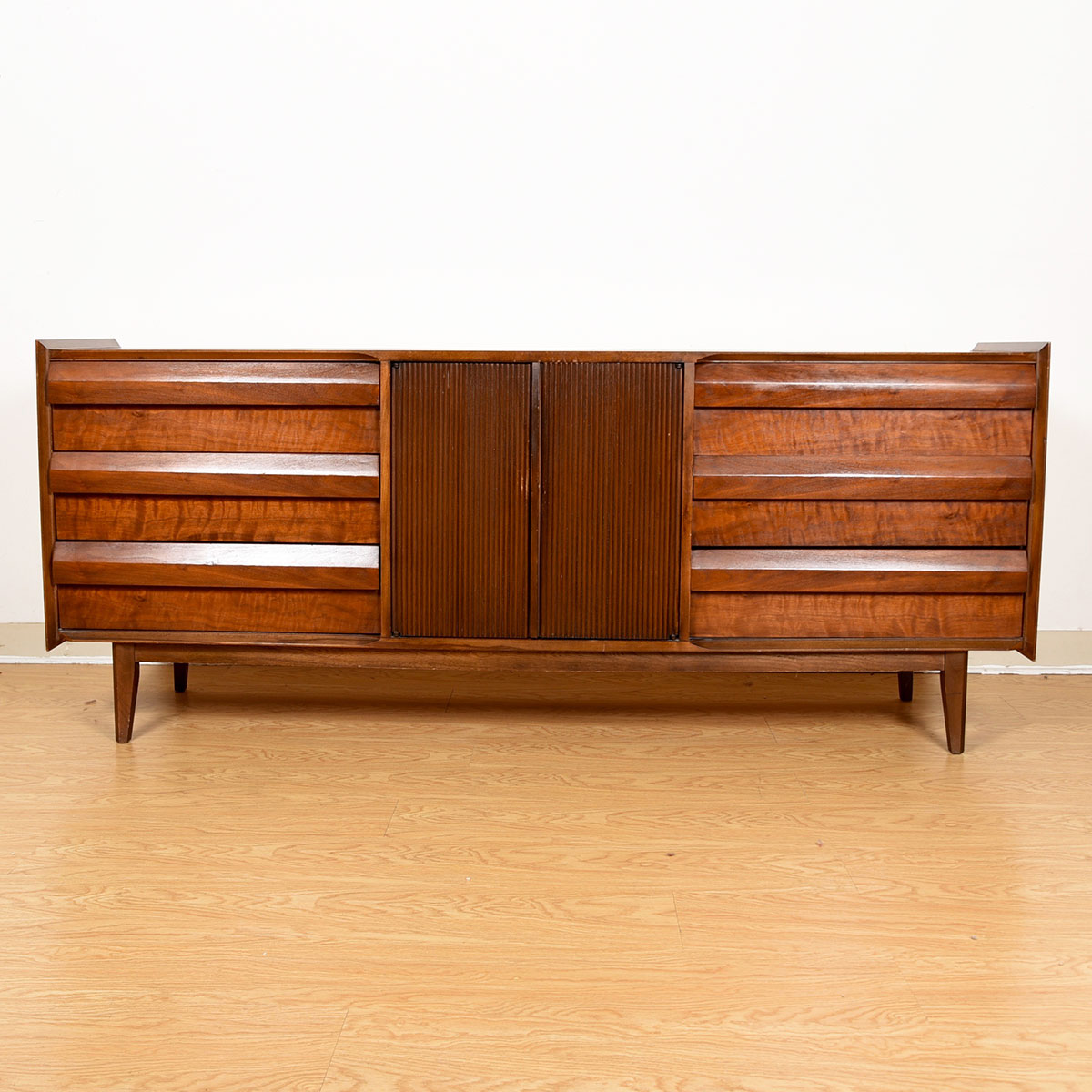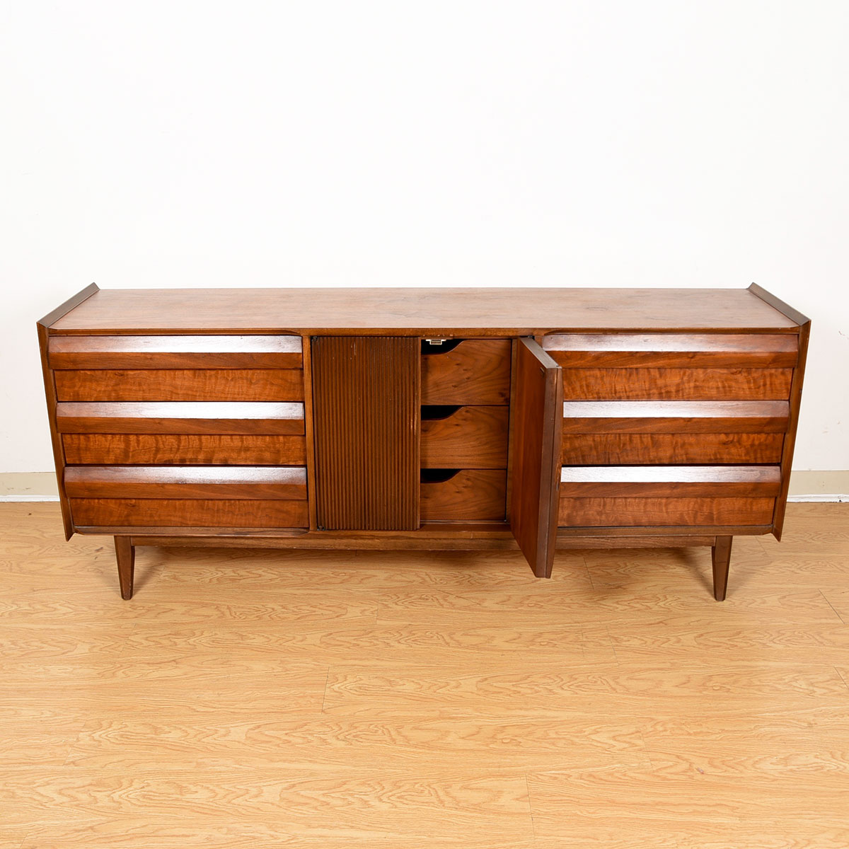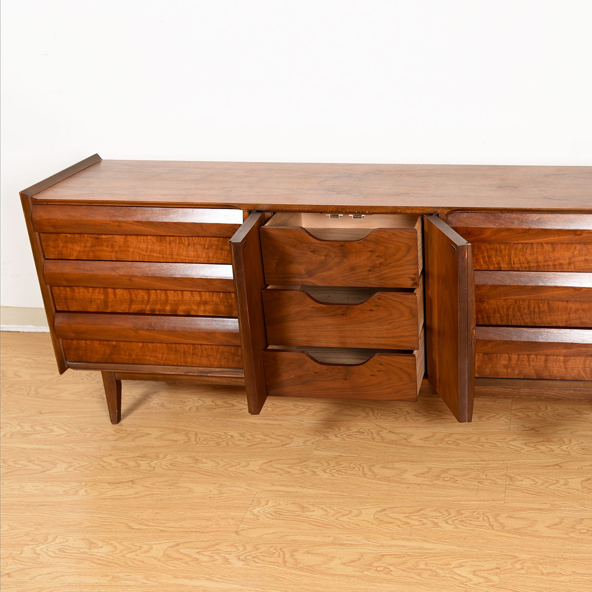 Mid Century Modern Walnut Long Dresser / Sideboard w/ Geometric Pulls