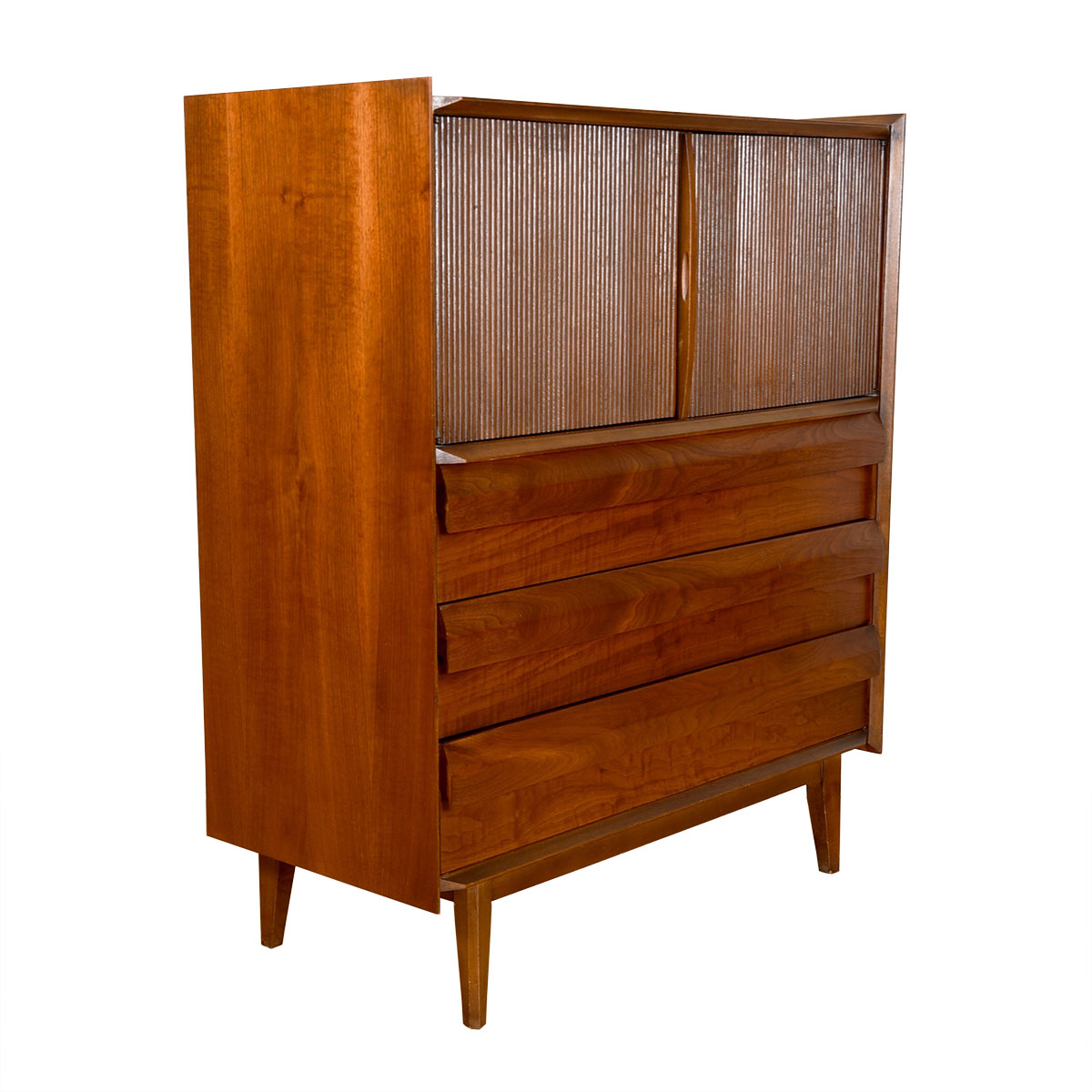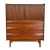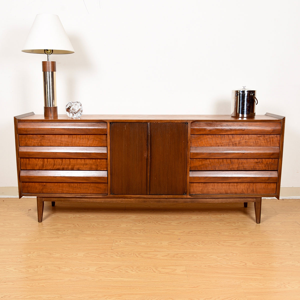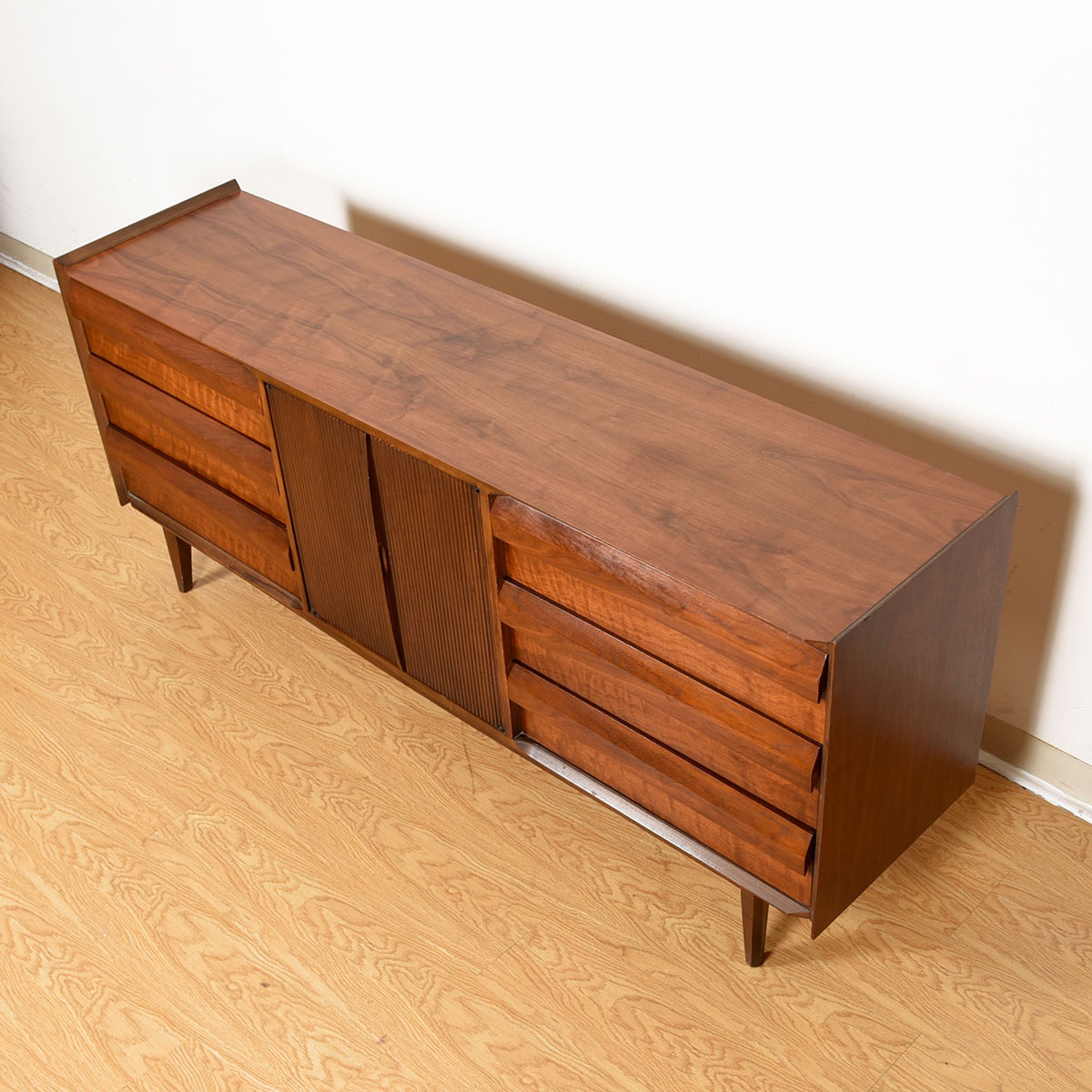 The stunning walnut figuring on this solid and well-crafted American piece complements the design and provides a play of light and dark across its front.