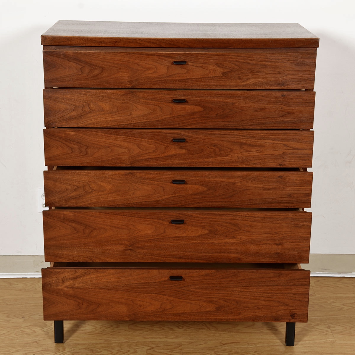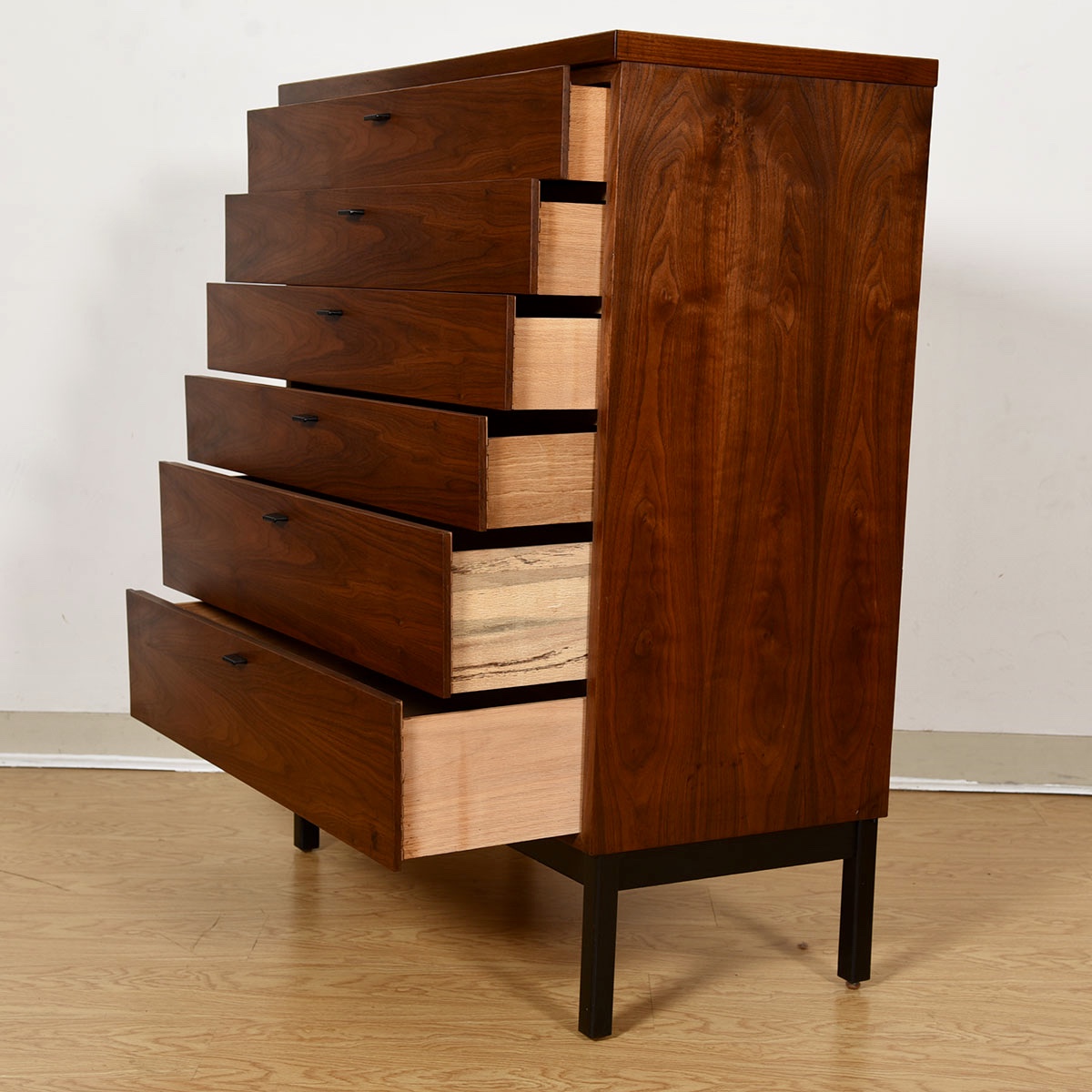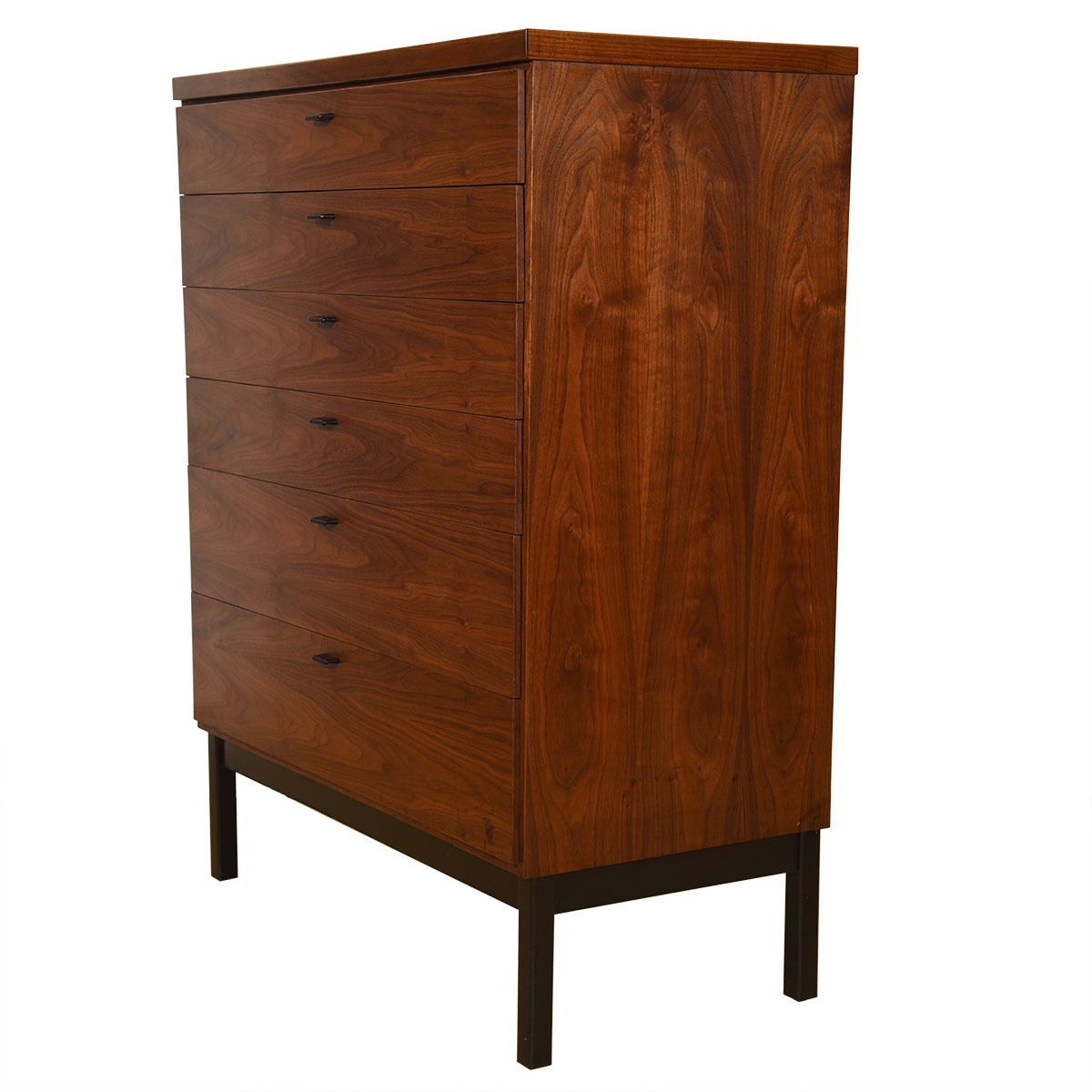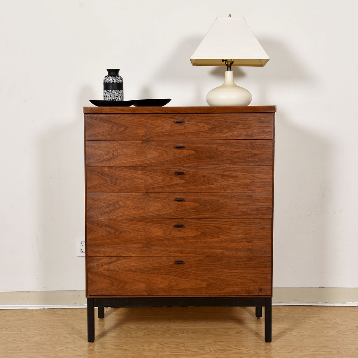 » » » Mid Century Tall Walnut + Black Handle Dresser