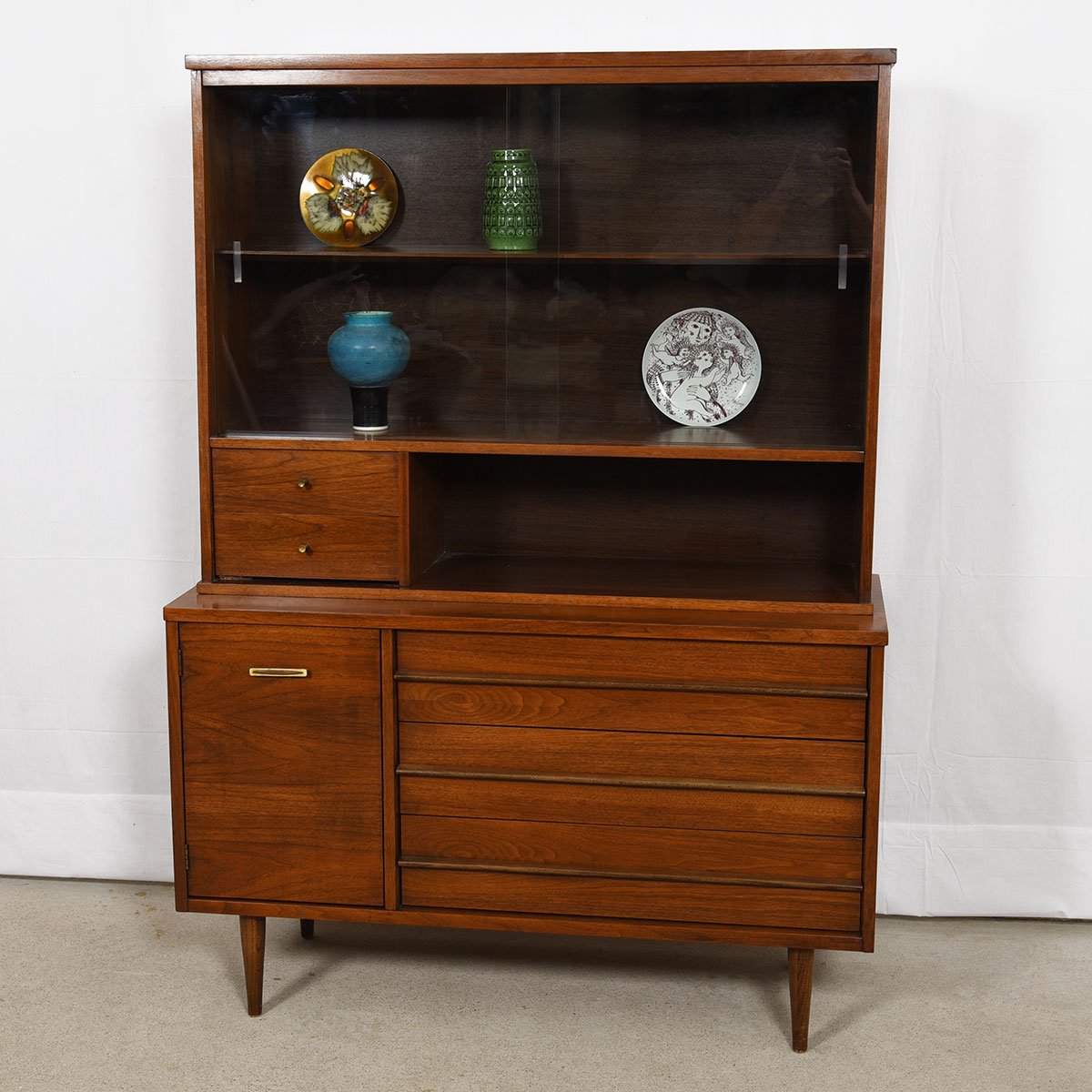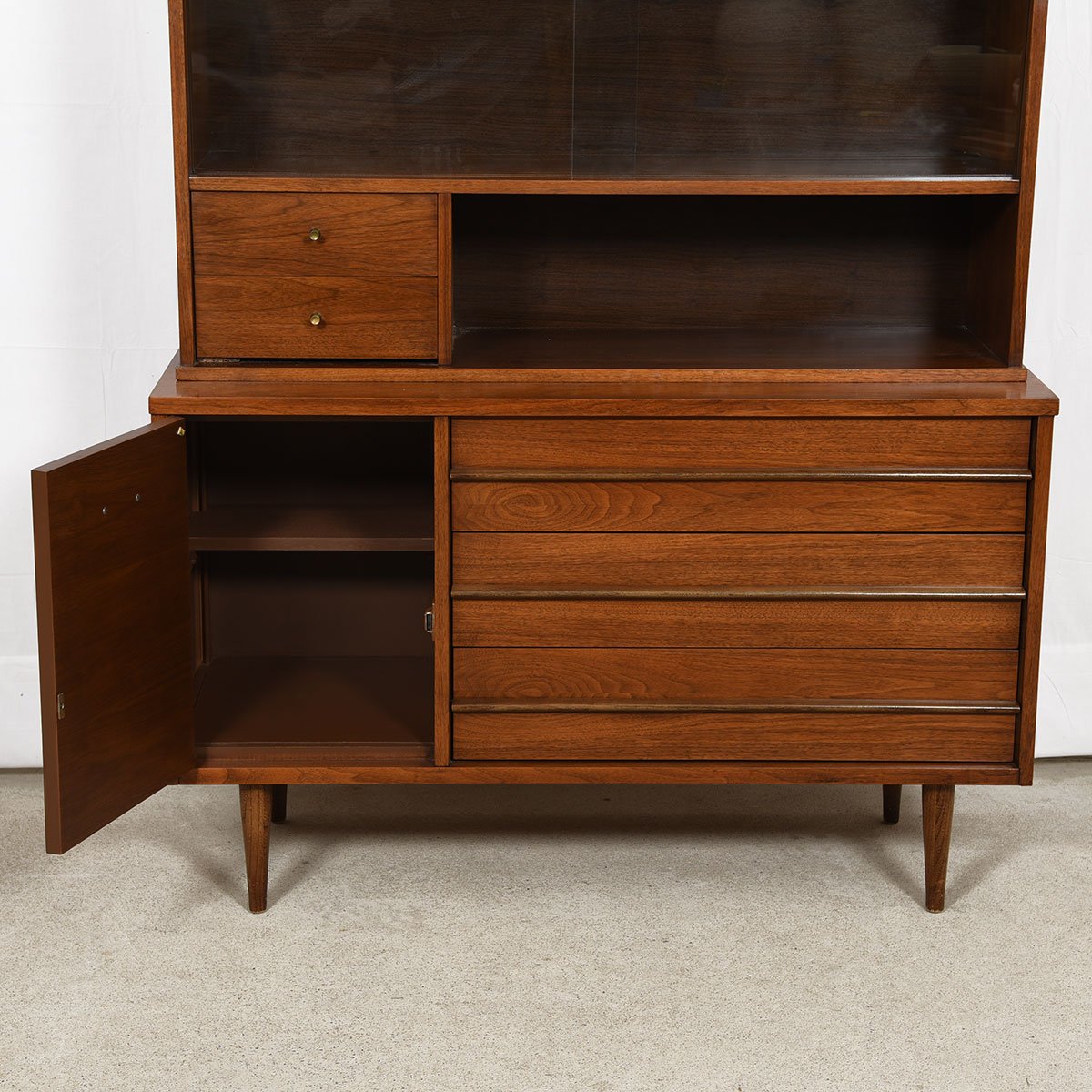 Mid Century Walnut 2-Pc. Display Cabinet w/ Glass Doors