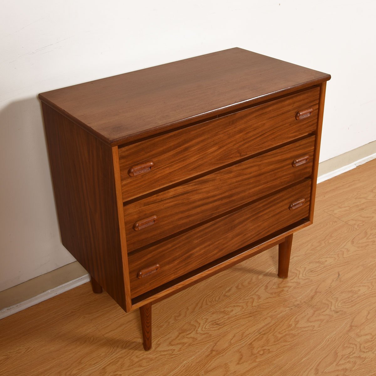 Mid Century Walnut 2-Tone Compact 3 Drawer Chest