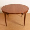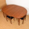 Mid Century Walnut Butterfly Leaf Expanding Round Dining Table + Chair Set.