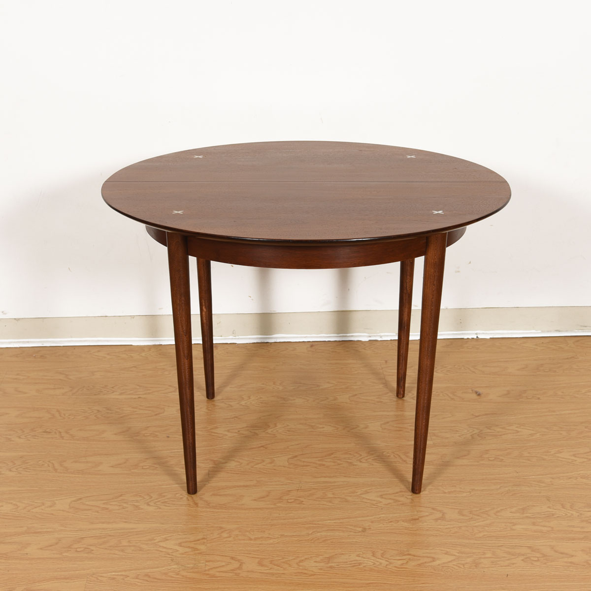 Mid Century Walnut Round Expanding Dining Table by American of Martinsville