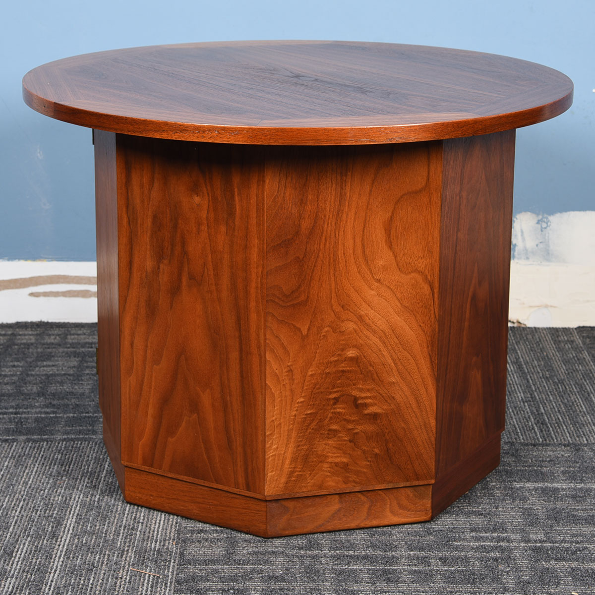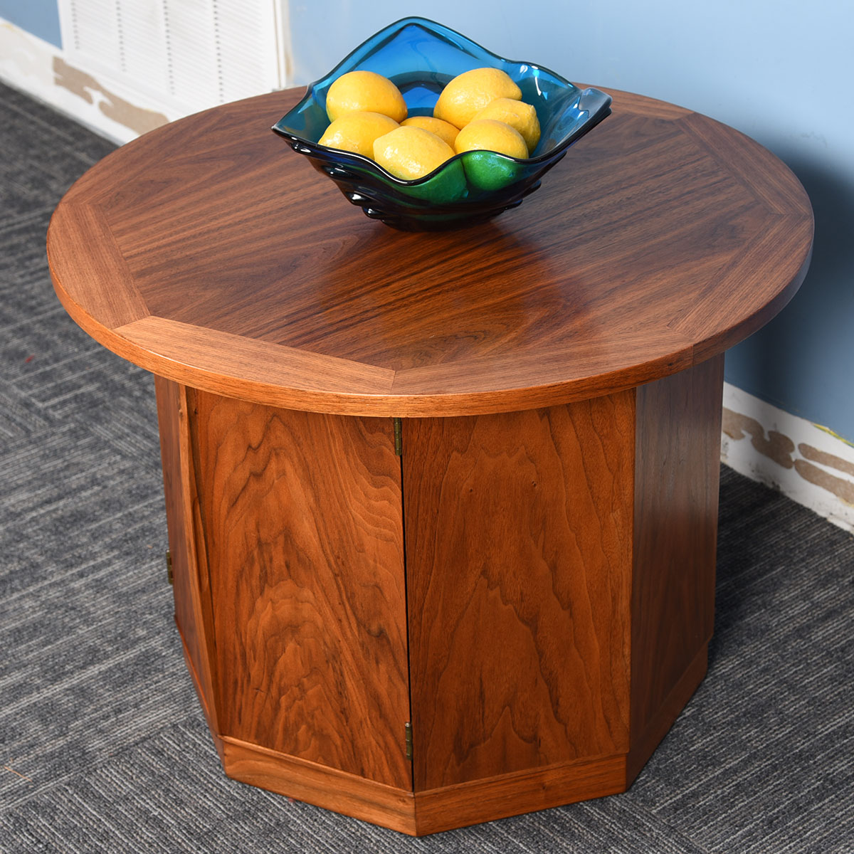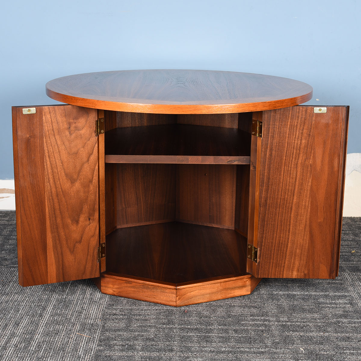 Mid-Century Walnut Round Accent Table / Storage Cabinet.