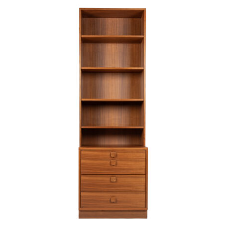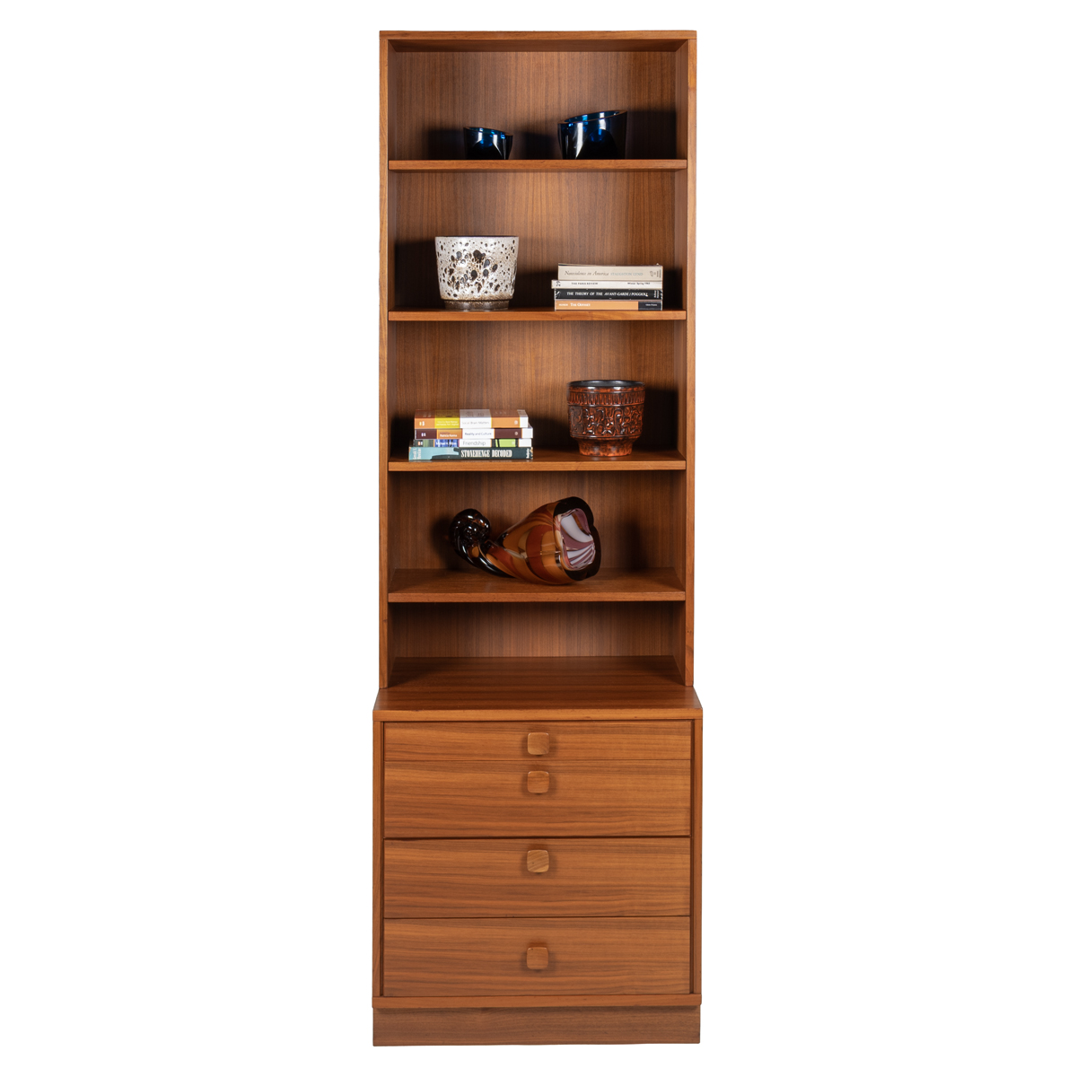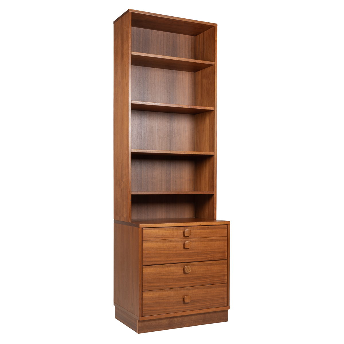 Minimalist Swedish Teak Chest w. 4 Graduated Drawers + Bookcase Top