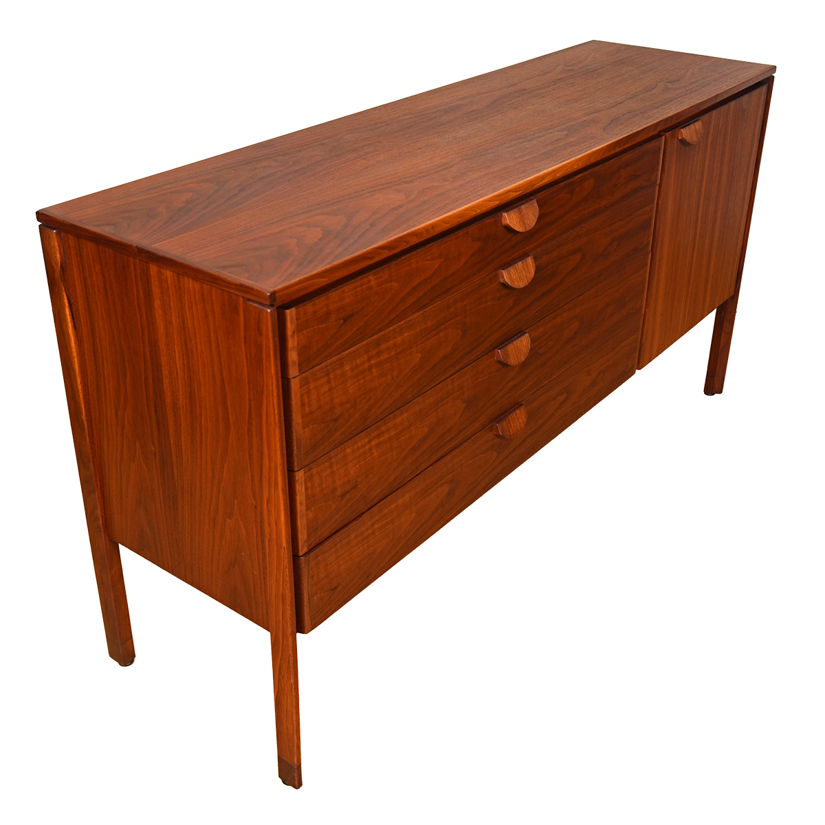 To arrange purchase or for more information about the Mirror-Image Pair of Jens Risom Walnut Dressers | Credenzas please call us at 202.882.1648 or email us at info@modernmobler.com